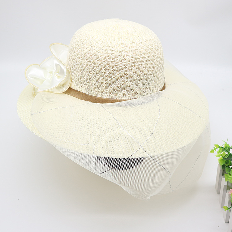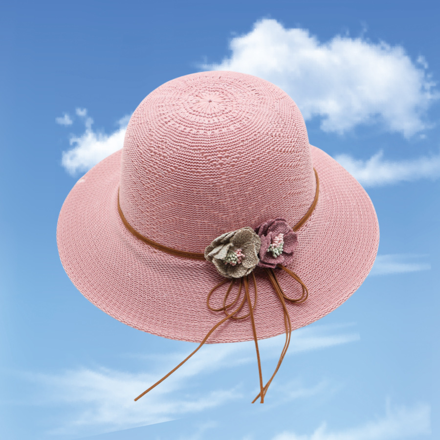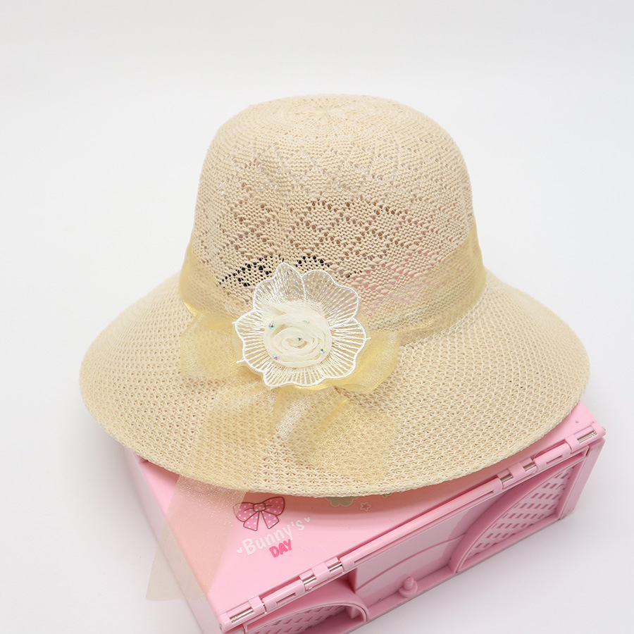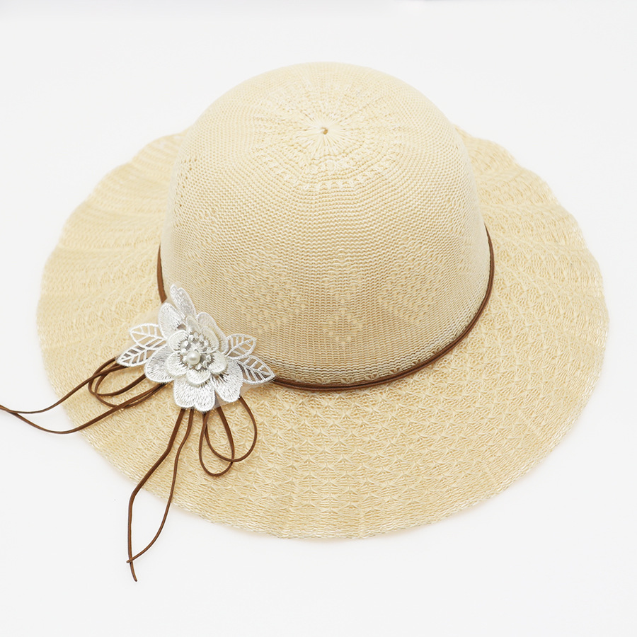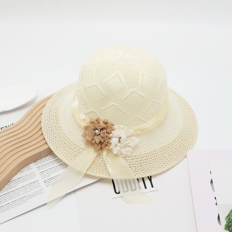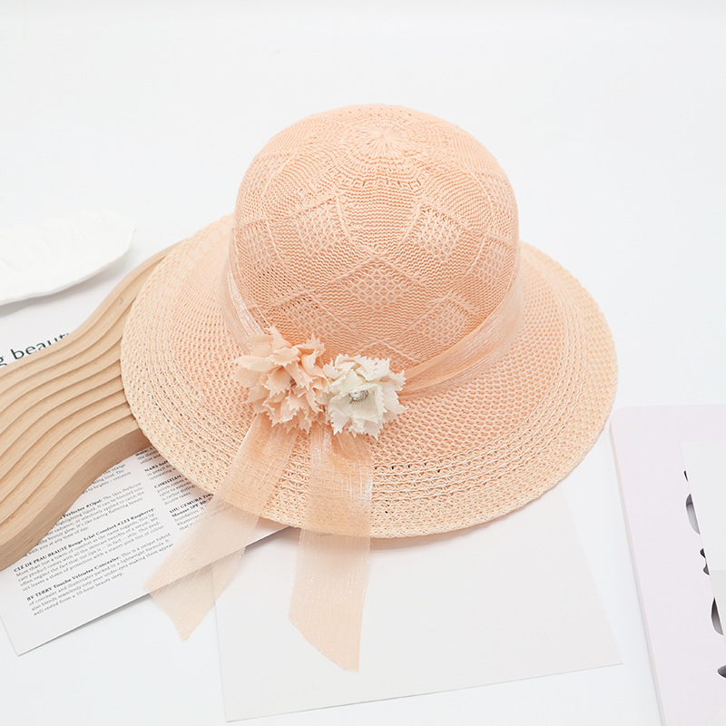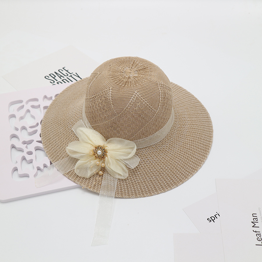 • 묶인 밧줄 다중 꽃잎 반원형 화분 모자 베이지