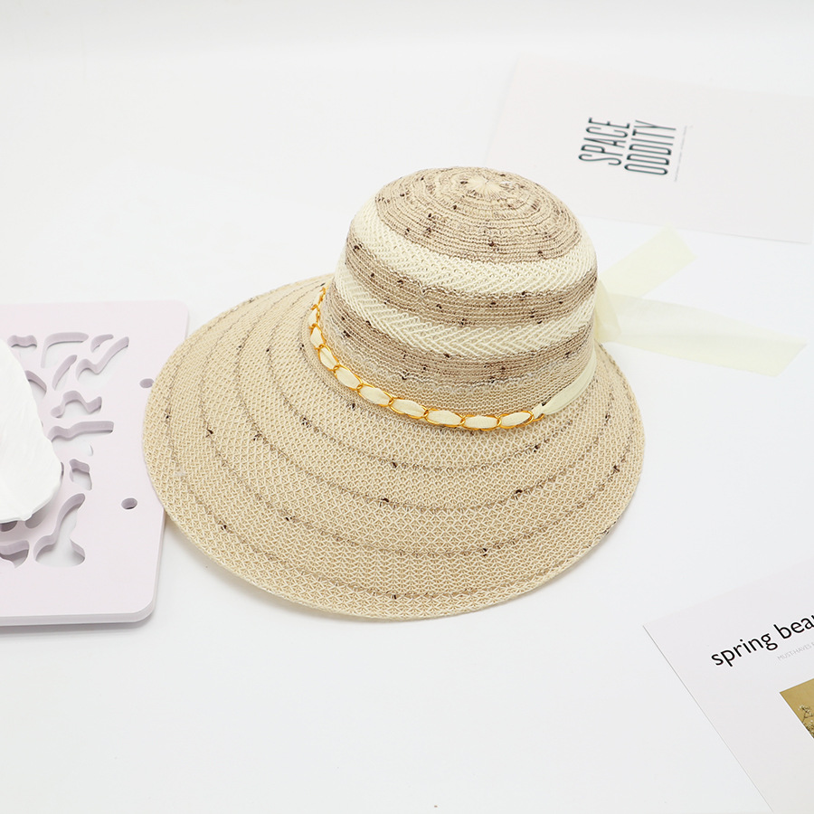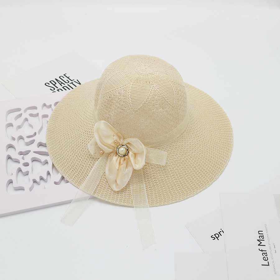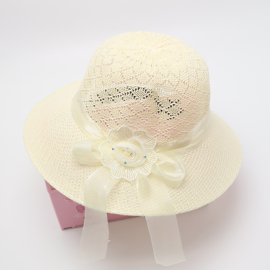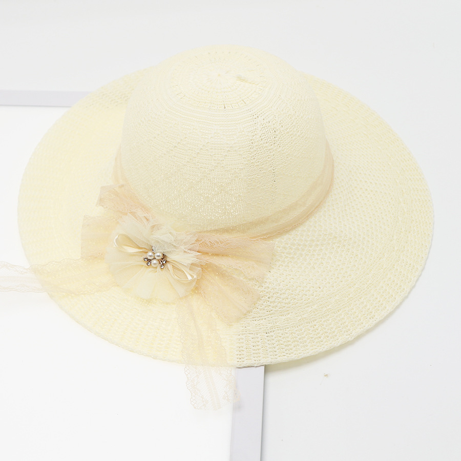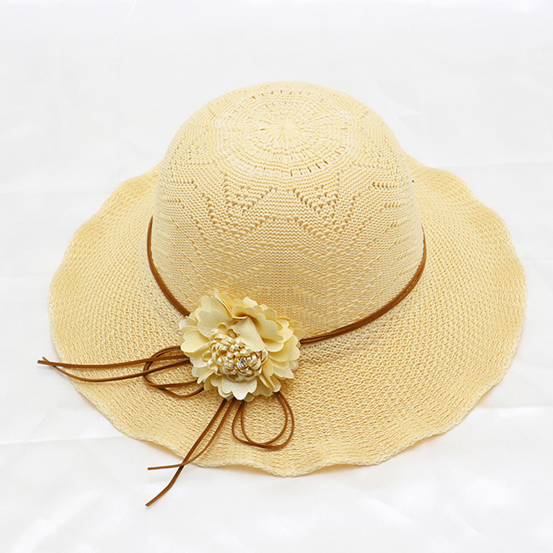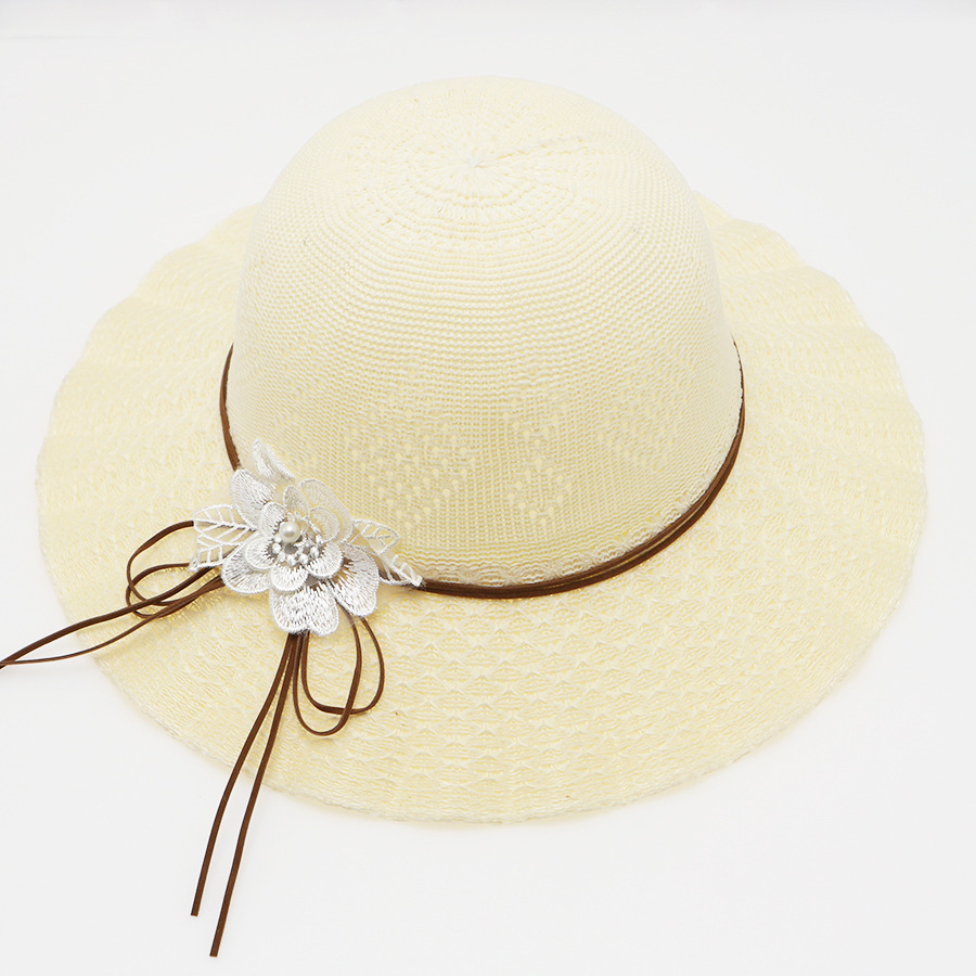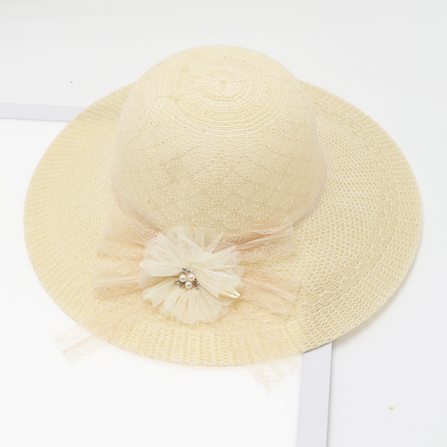 • 묶인 밧줄 다중 꽃잎 반원형 화분 모자 베이지