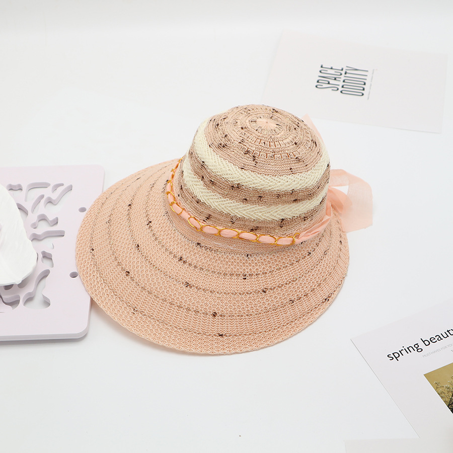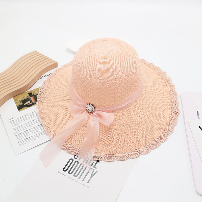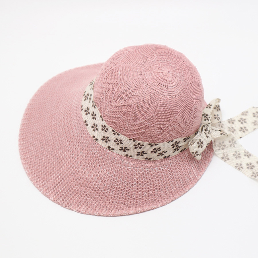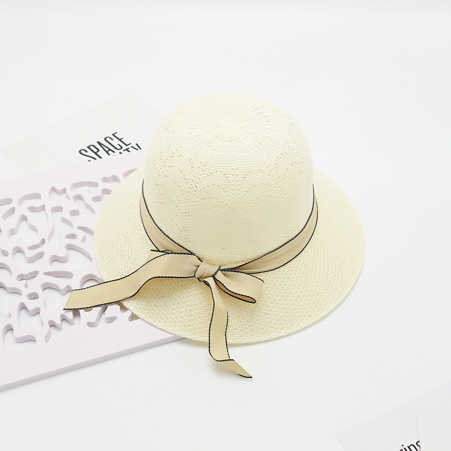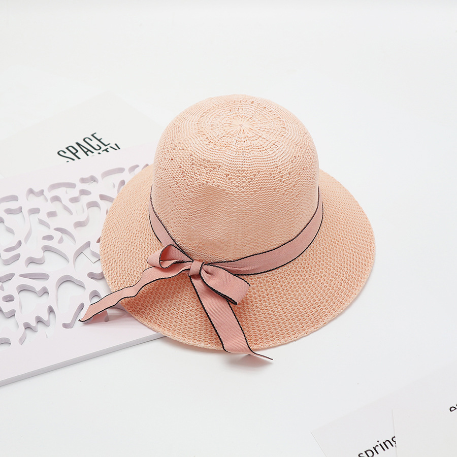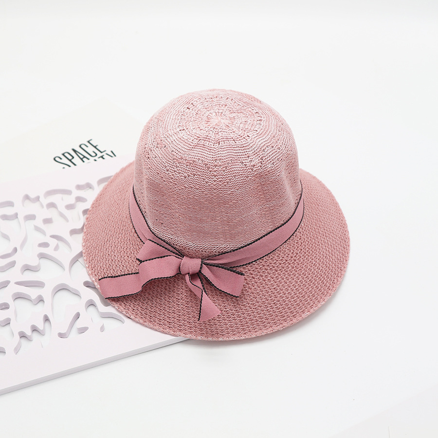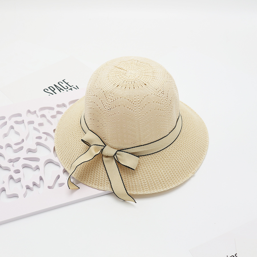 • 단색 리본 활 분지 모자 된장