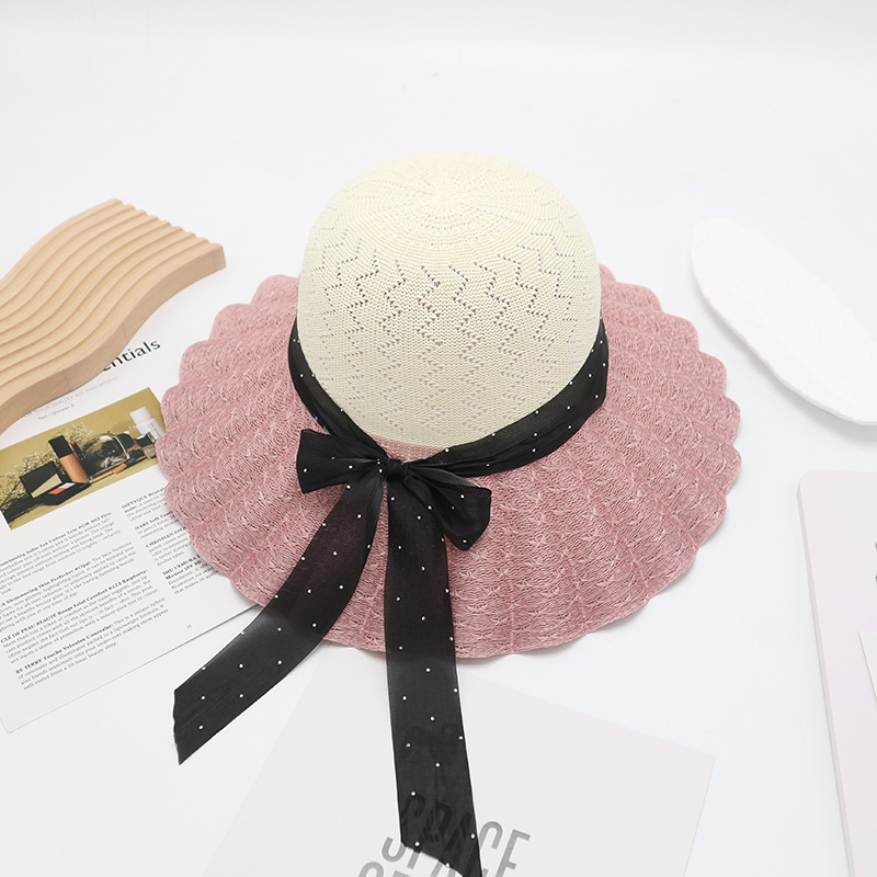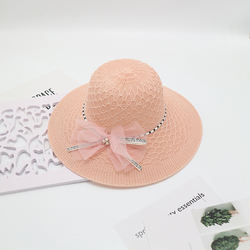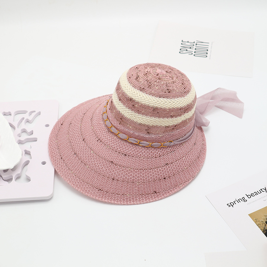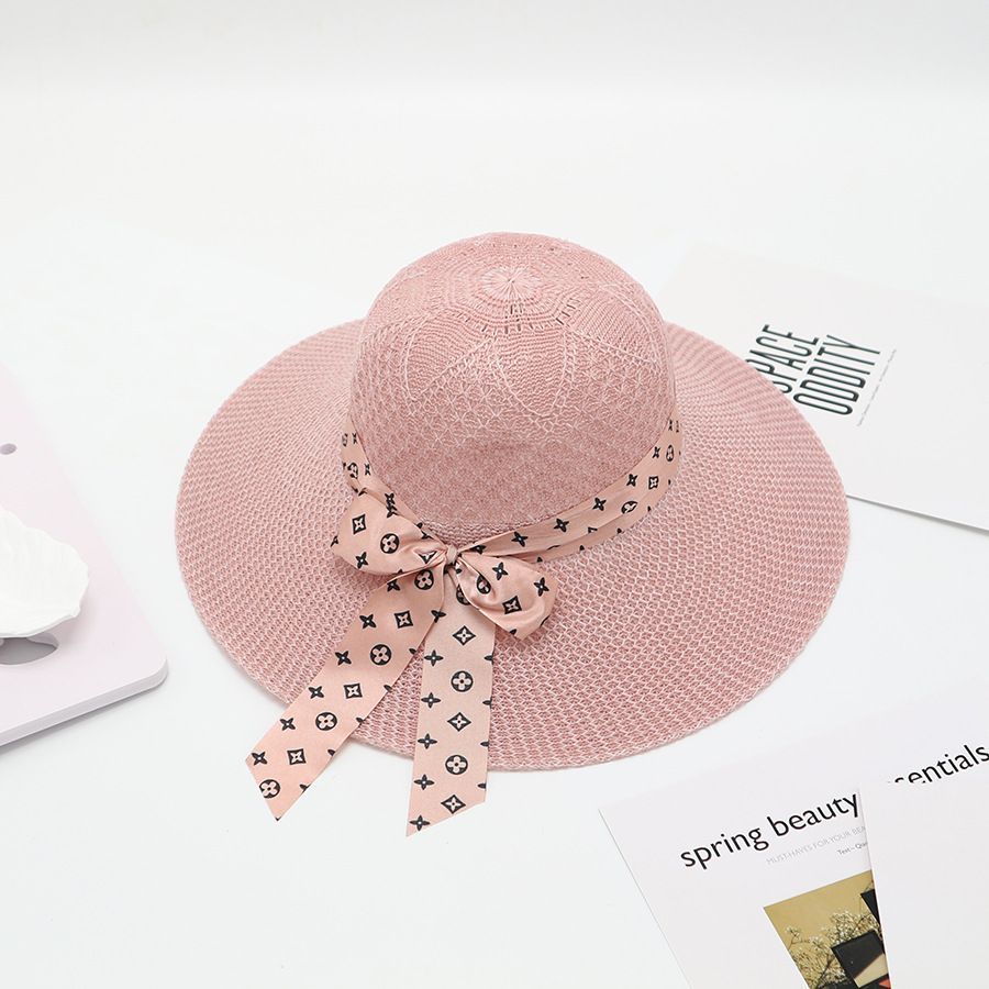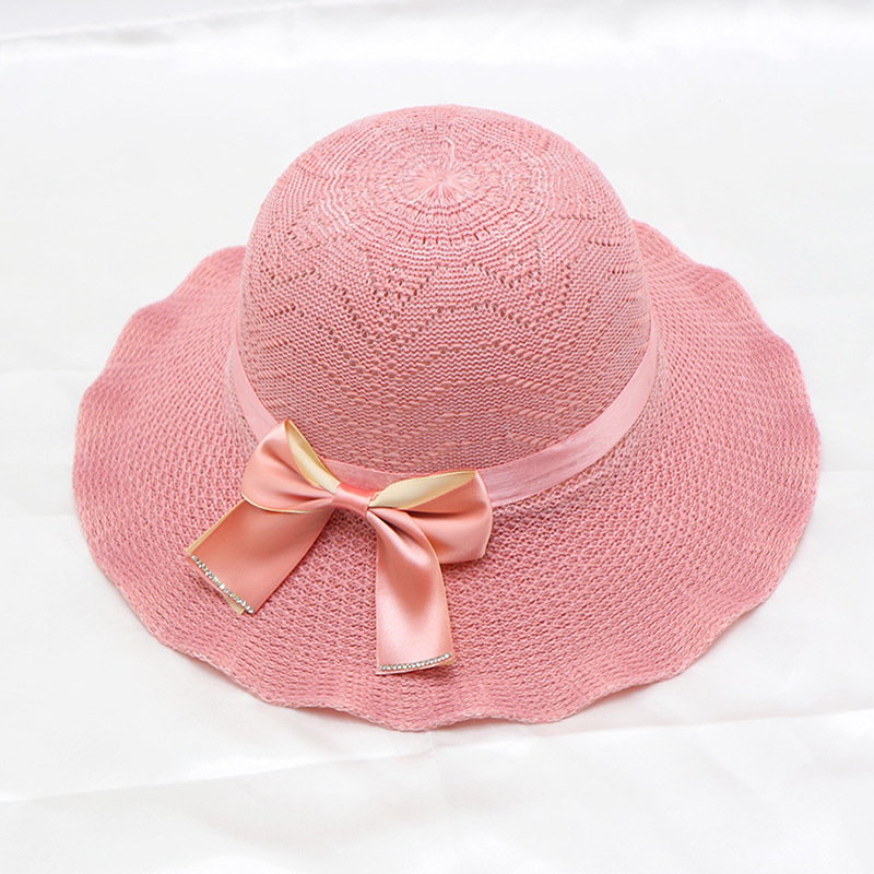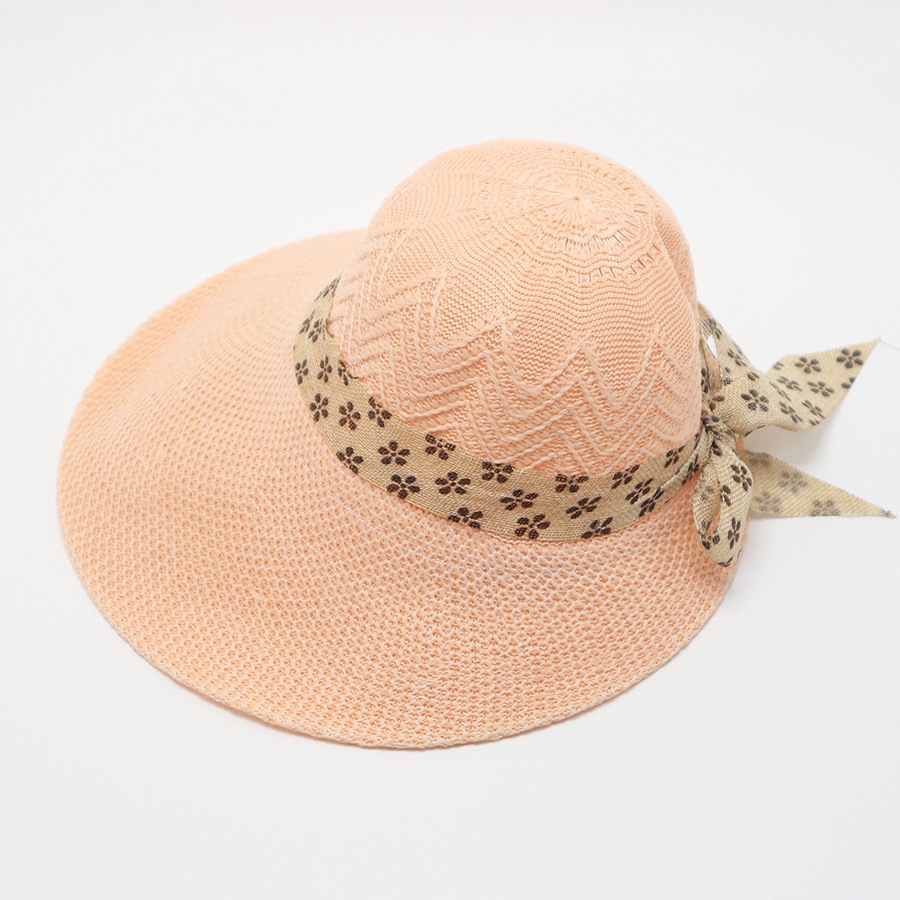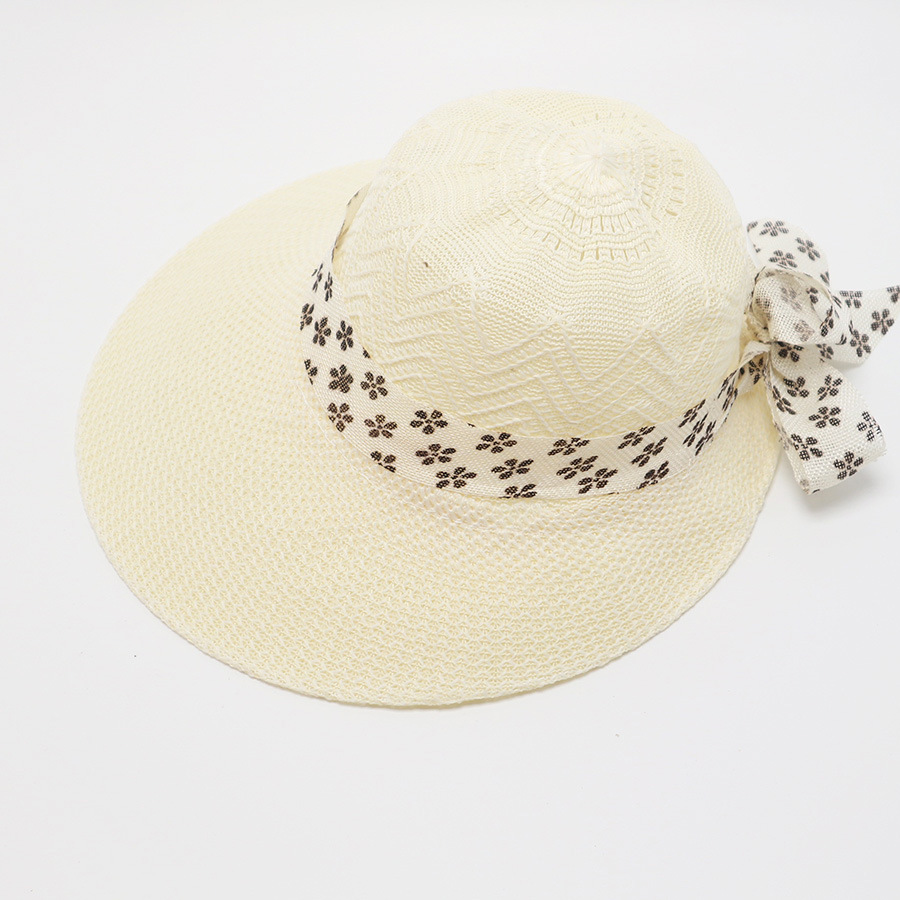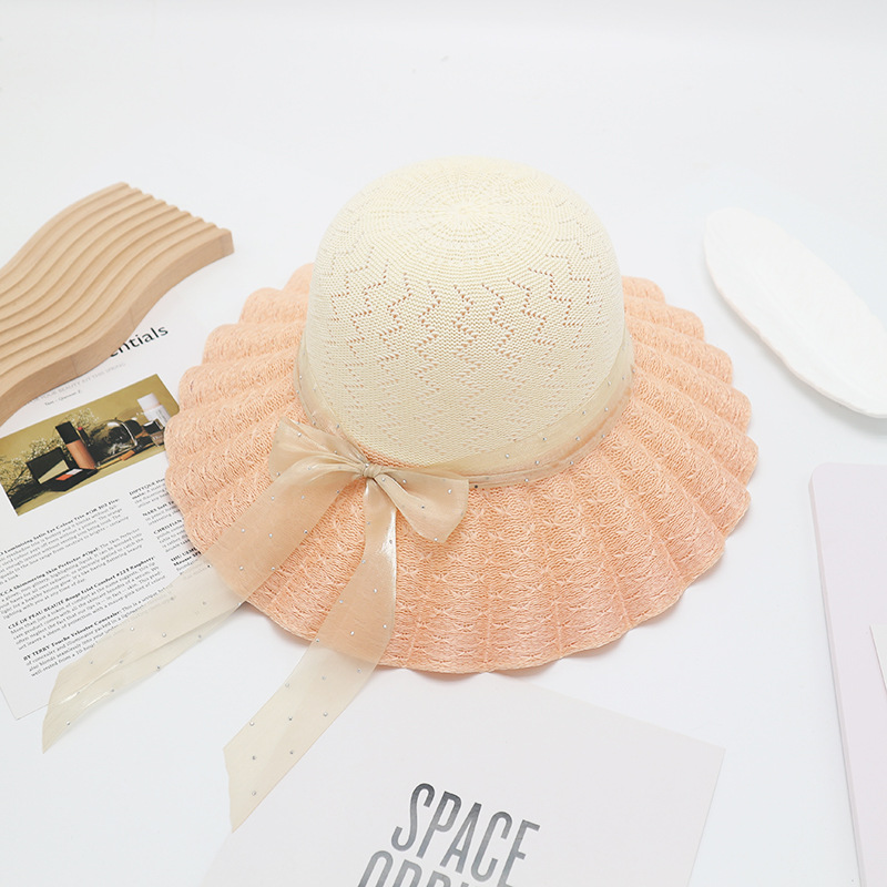 • 단색 리본 활 분지 모자 된장