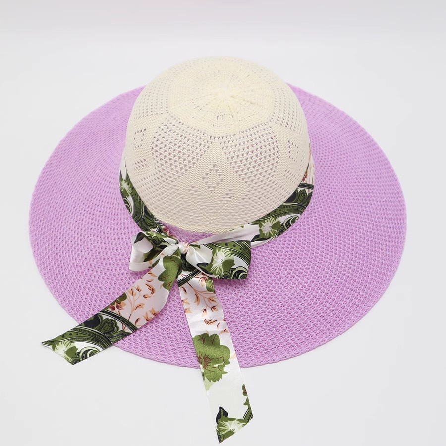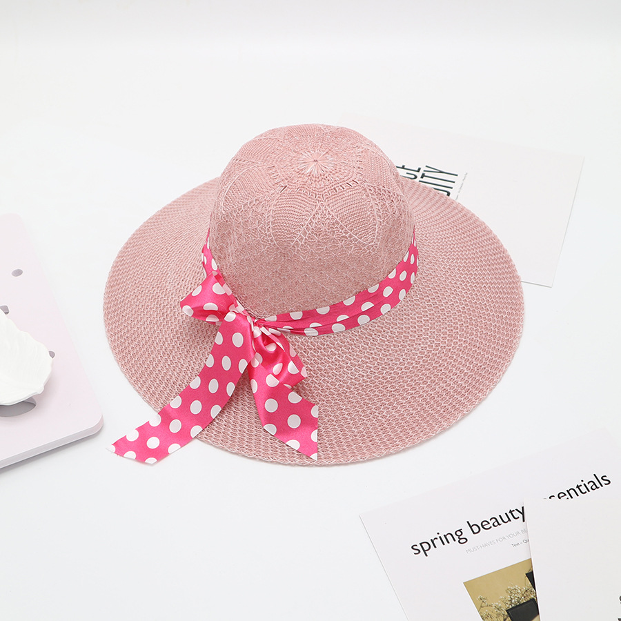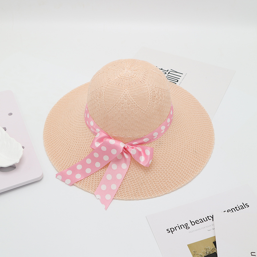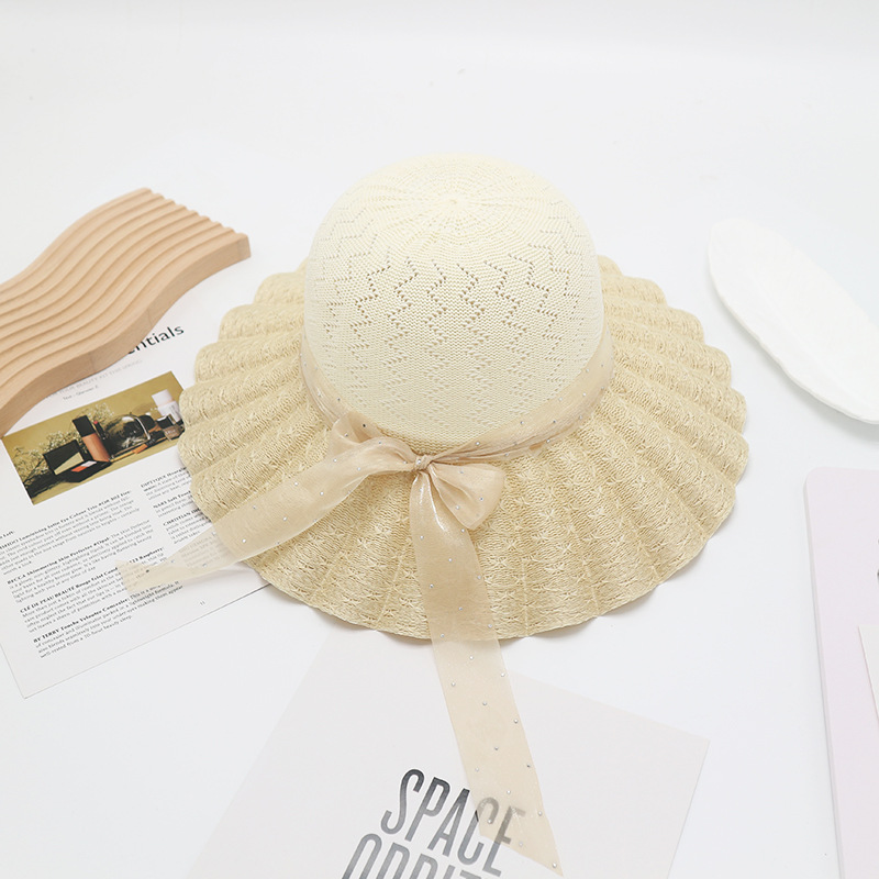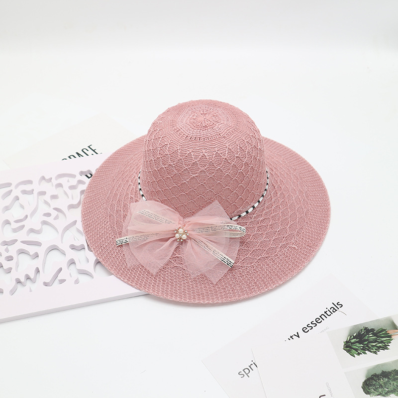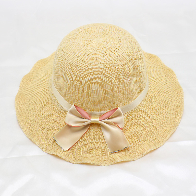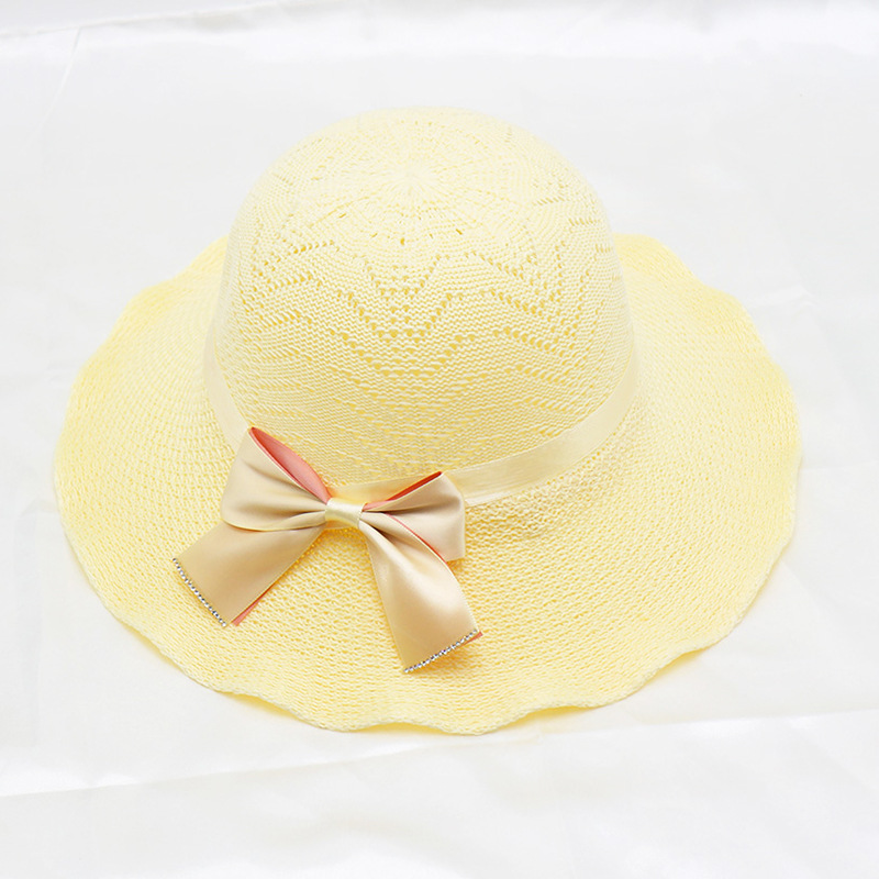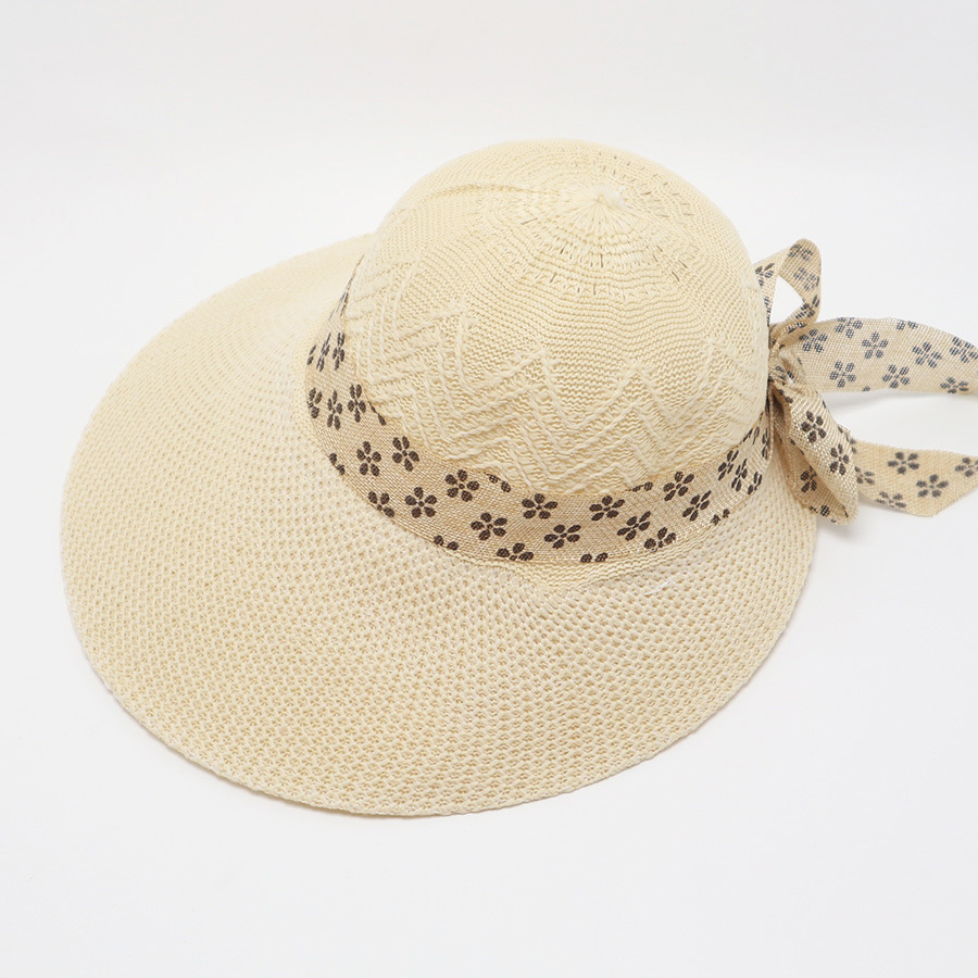 • 단색 리본 활 분지 모자 된장