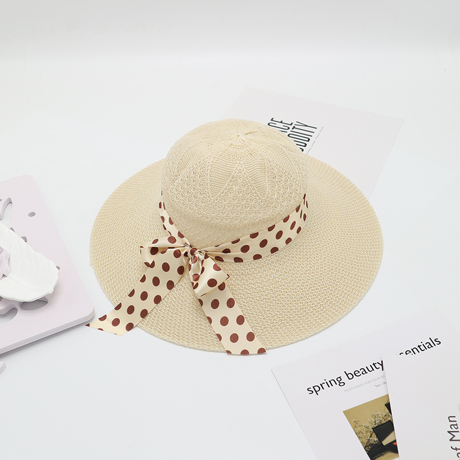 • 실크 리본 폴카 도트 베이지