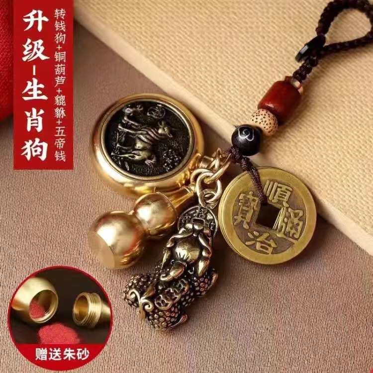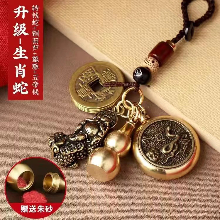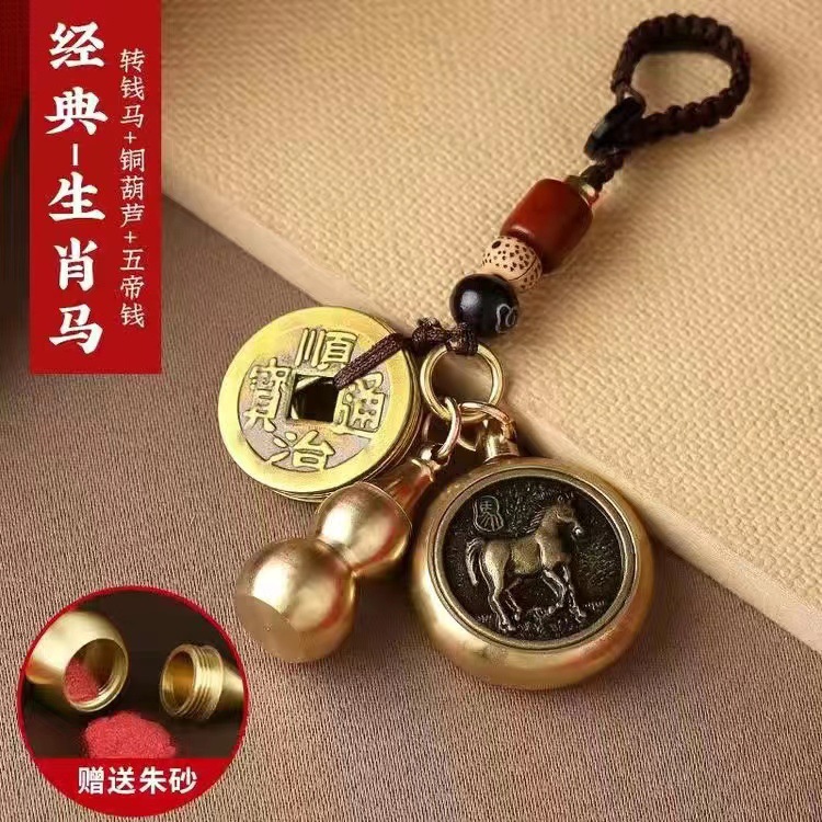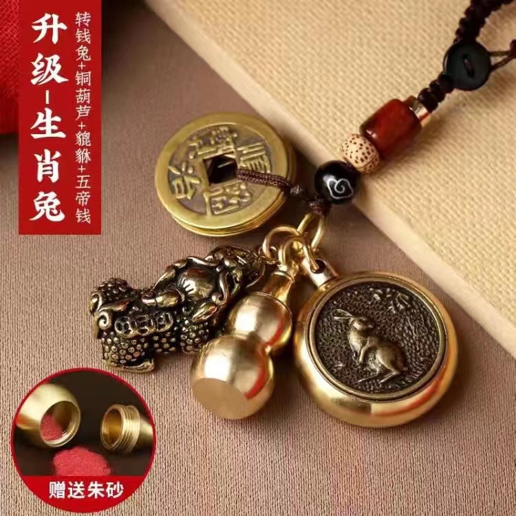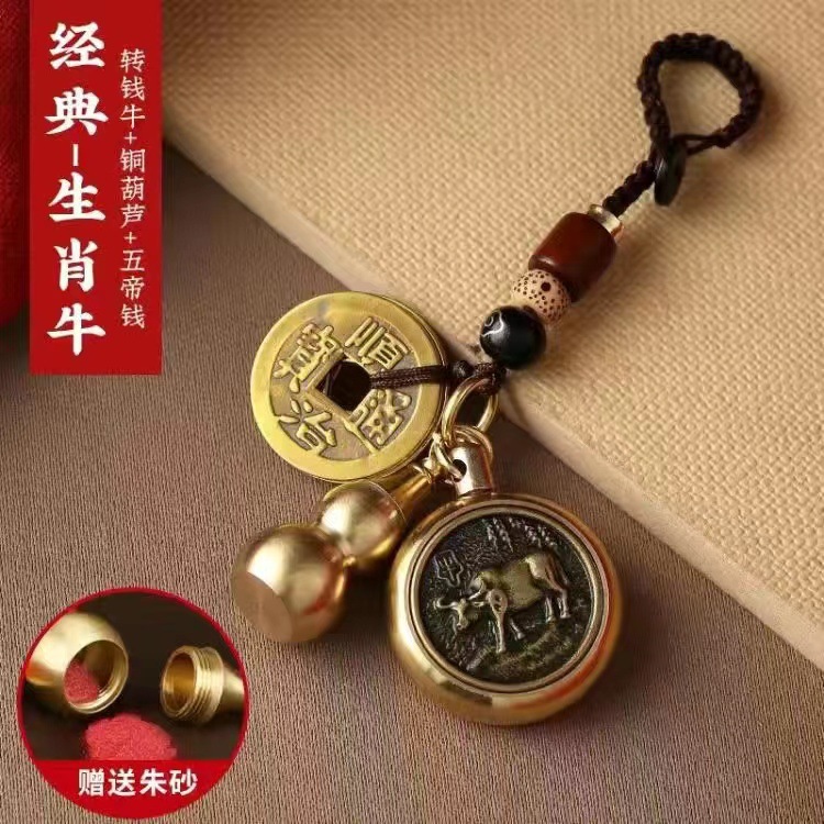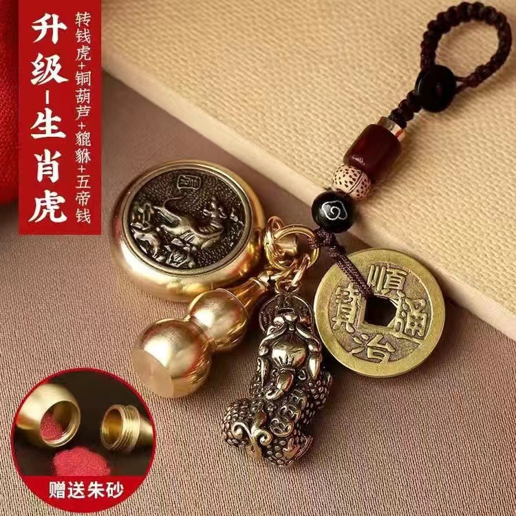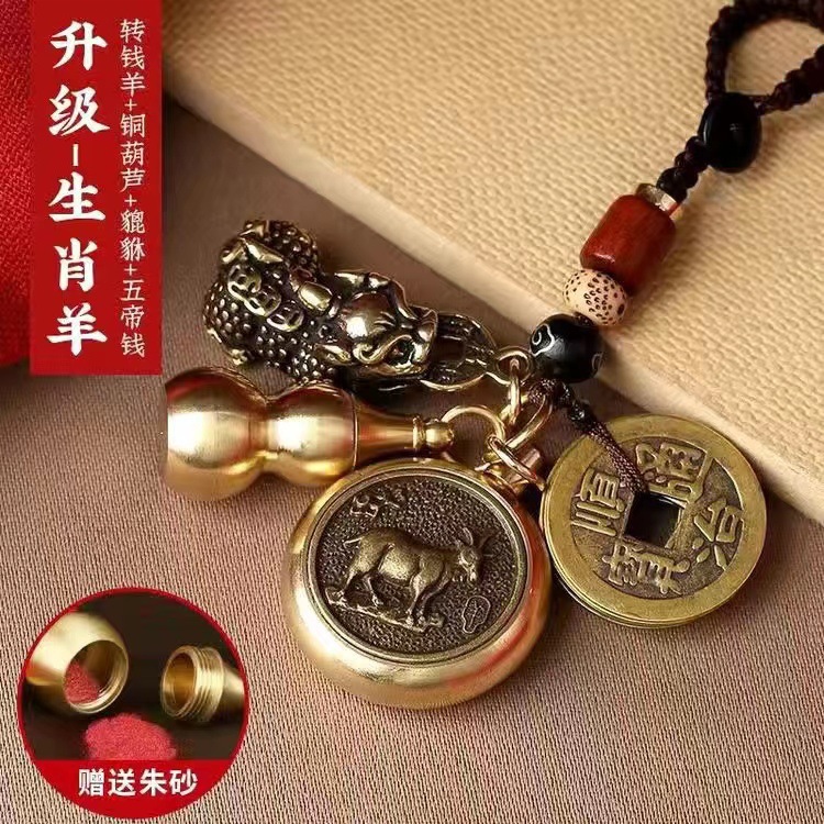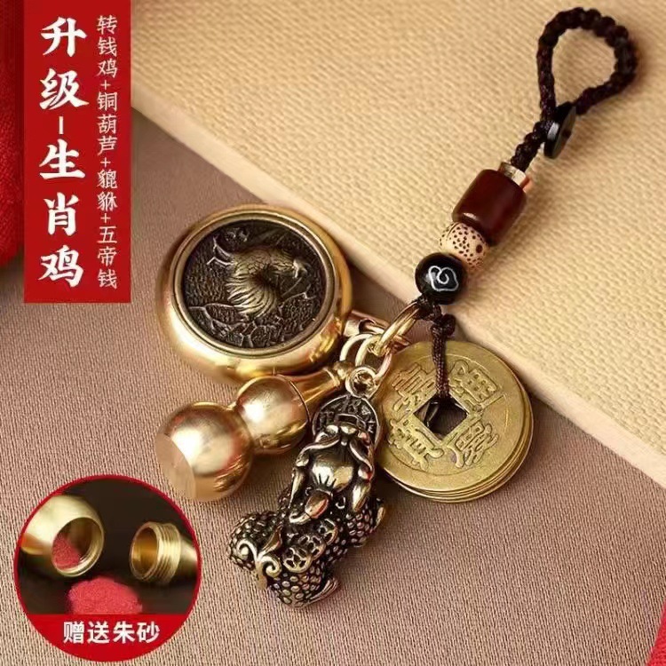 순황동 주사석 비우(貔貅) 동조롱박 자물쇠 열쇠고리, 12지신 자동차 키체인, 오황제 동전 펜던트, 부를 부르는 장신구