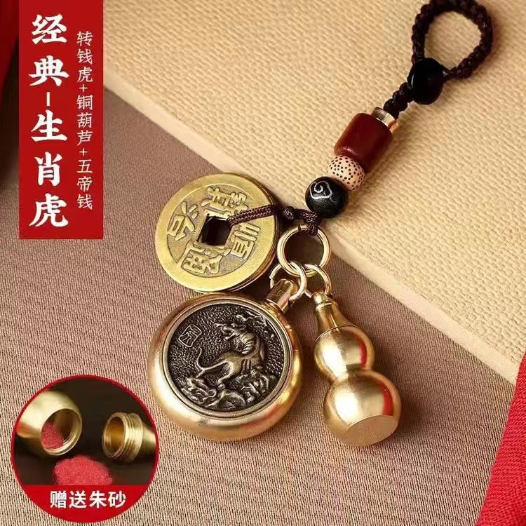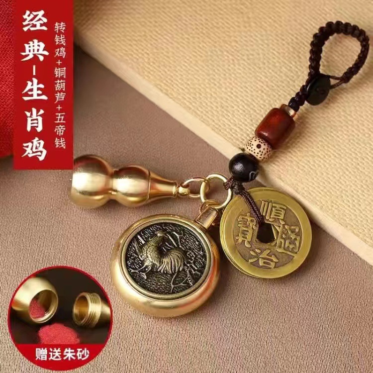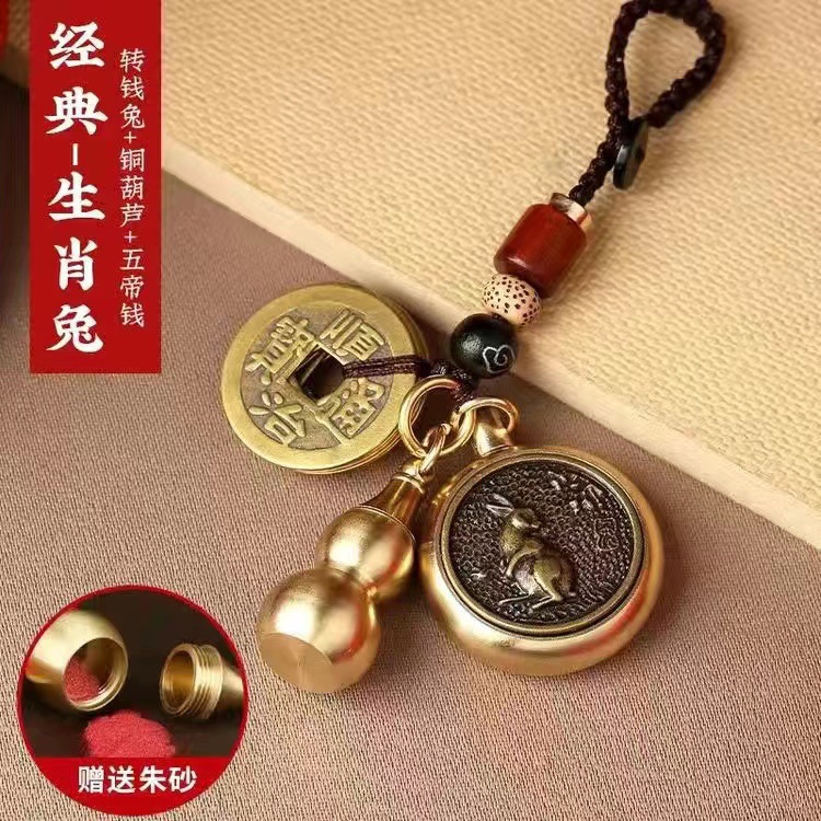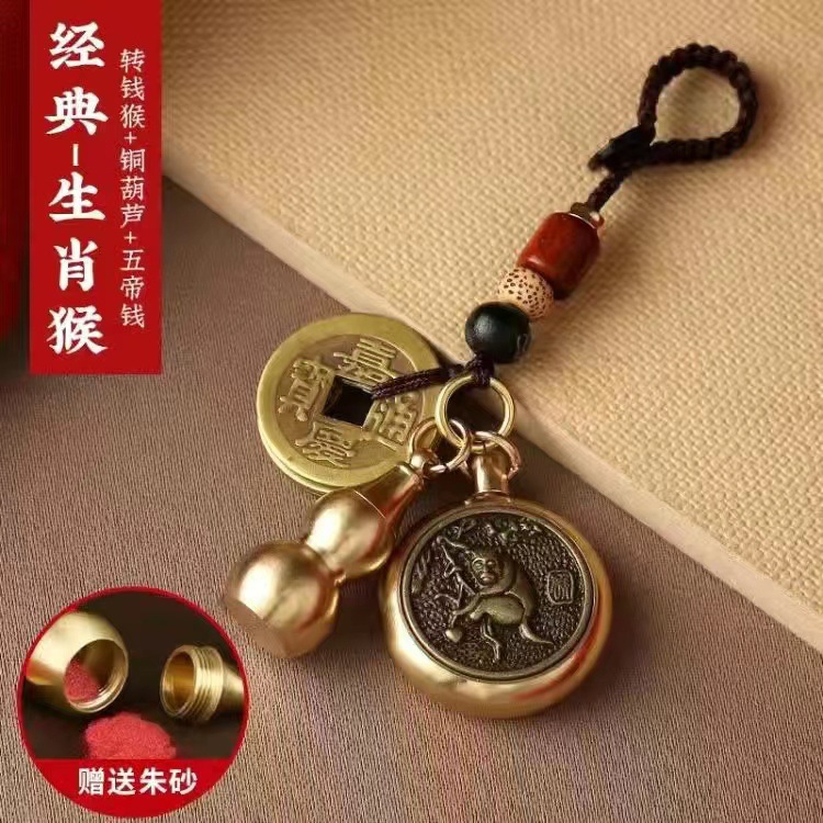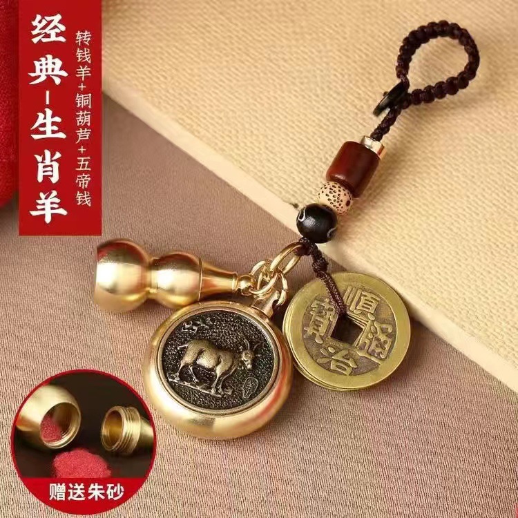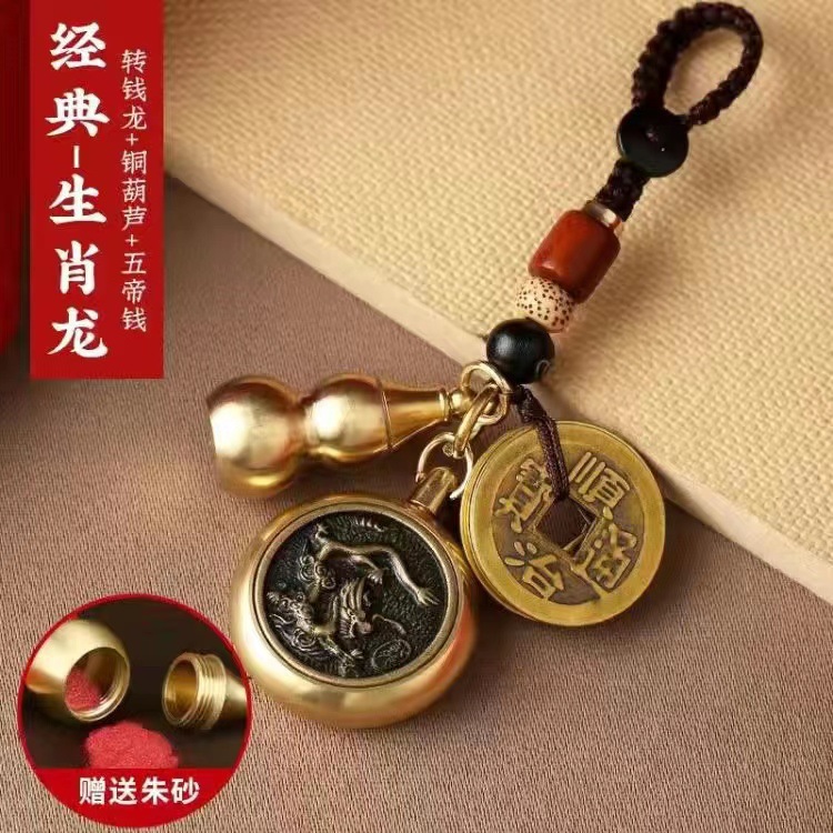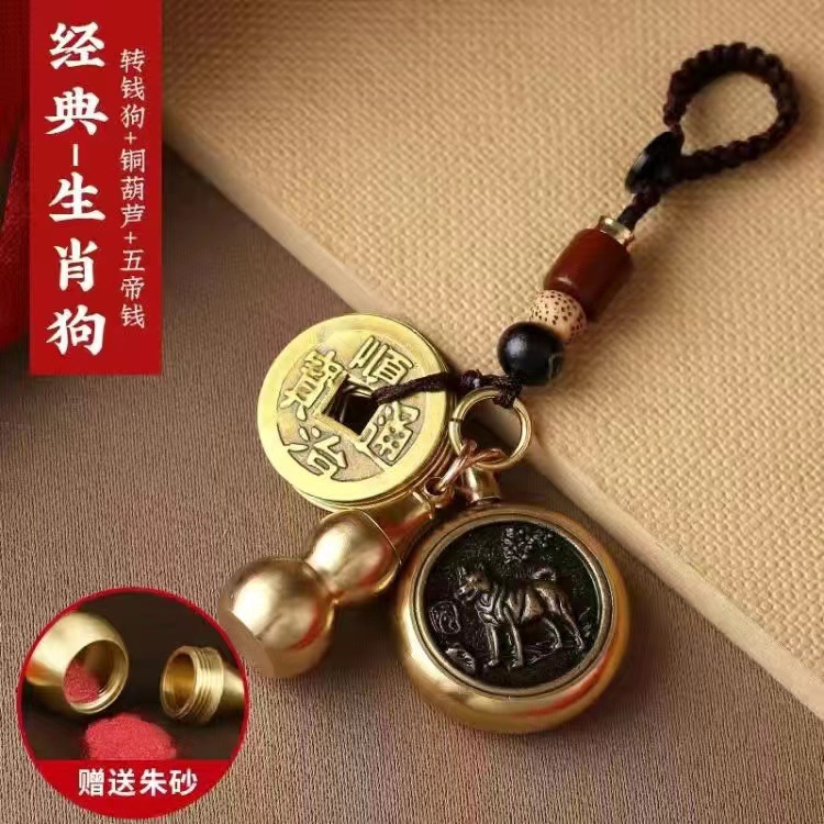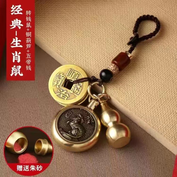 순황동 주사석 비우(貔貅) 동조롱박 자물쇠 열쇠고리, 12지신 자동차 키체인, 오황제 동전 펜던트, 부를 부르는 장신구