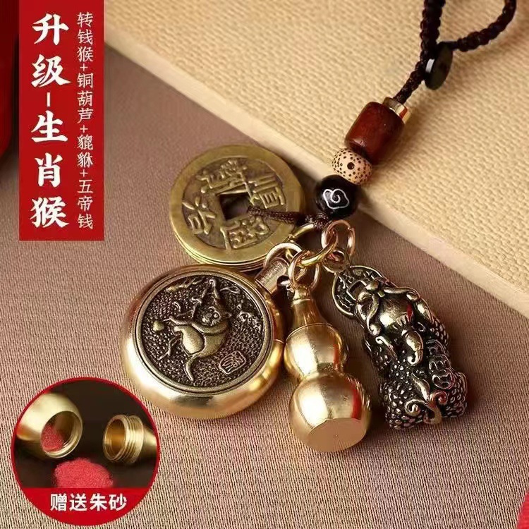순황동 주사석 비우(貔貅) 동조롱박 자물쇠 열쇠고리, 12지신 자동차 키체인, 오황제 동전 펜던트, 부를 부르는 장신구스토어 가기
