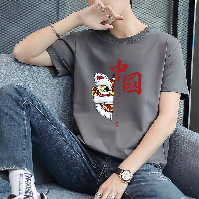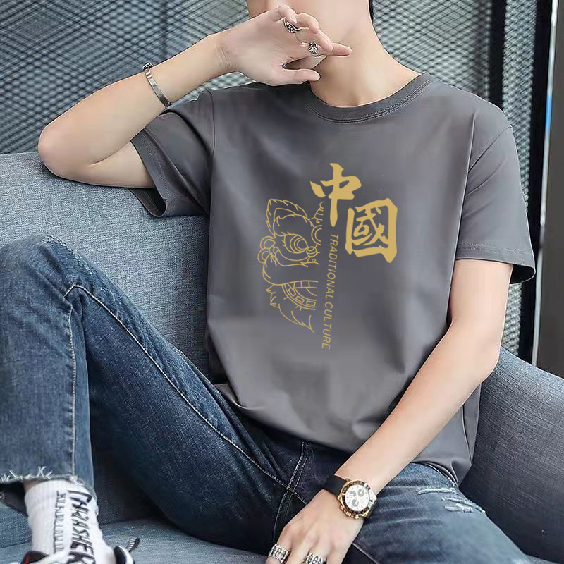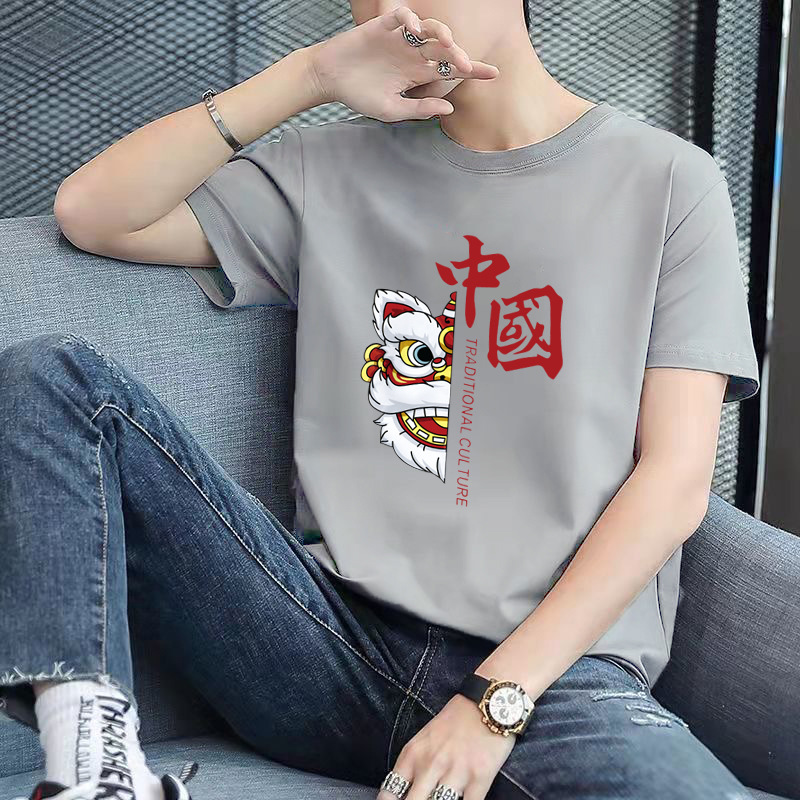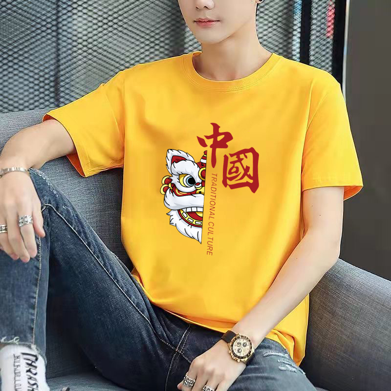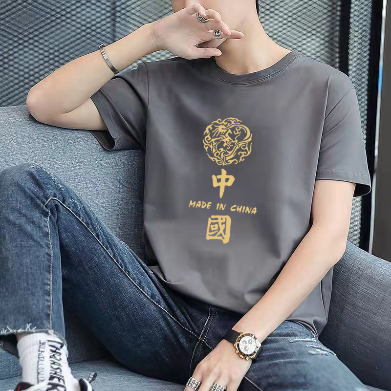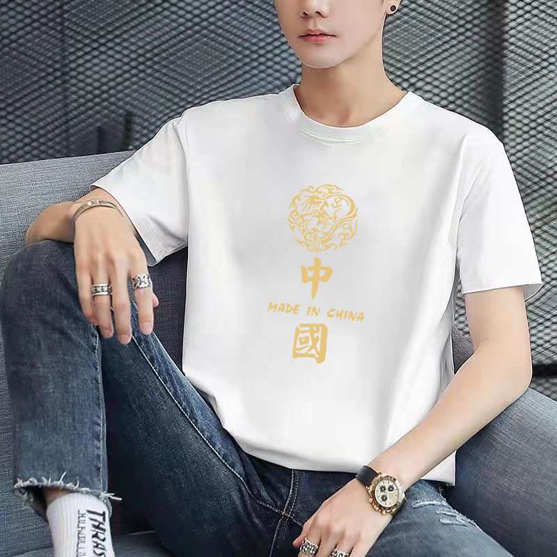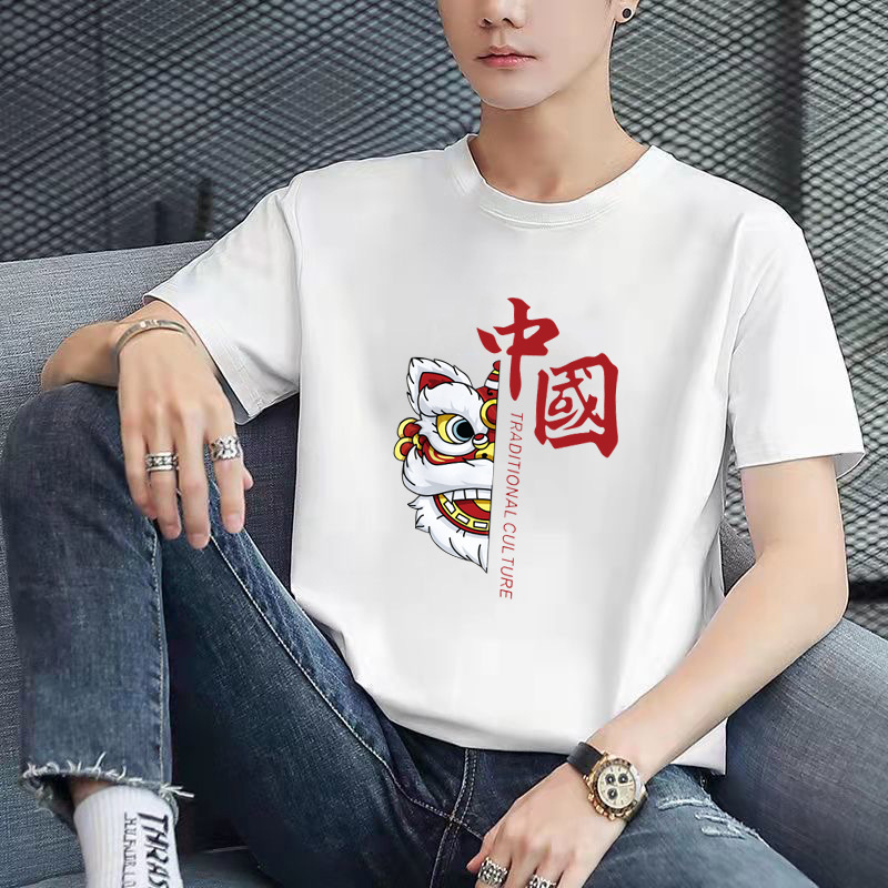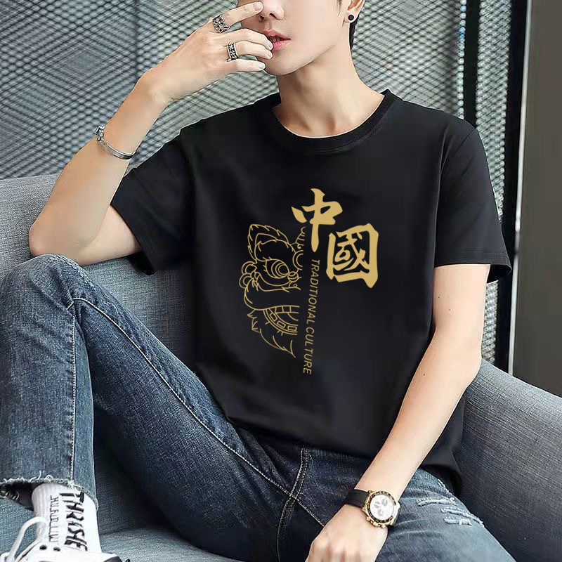 남성용 반팔 티셔츠, 남성용 라운드넥 베이직 티셔츠, 젊은 커플을 위한 같은 스타일, 중국풍, 국민 트렌드스토어 가기