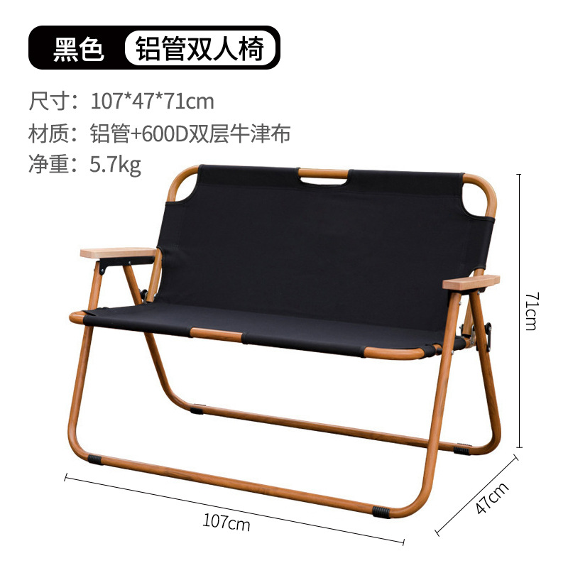 • 나뭇결 스프레이 알루미늄 튜브 더블 체어-블랙