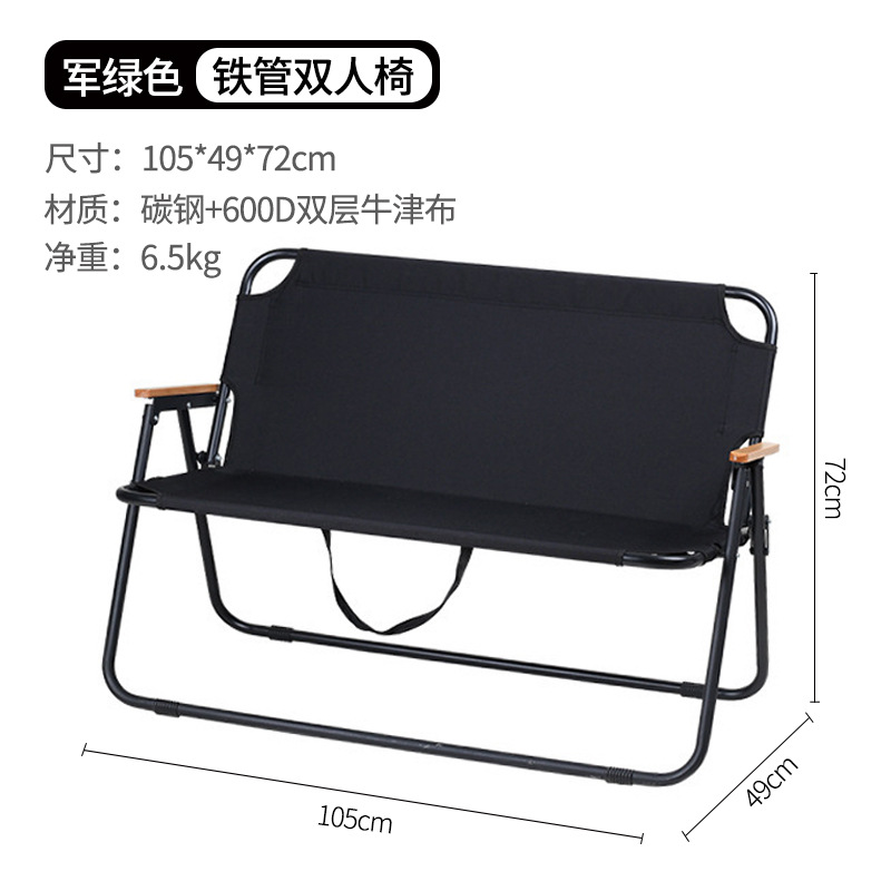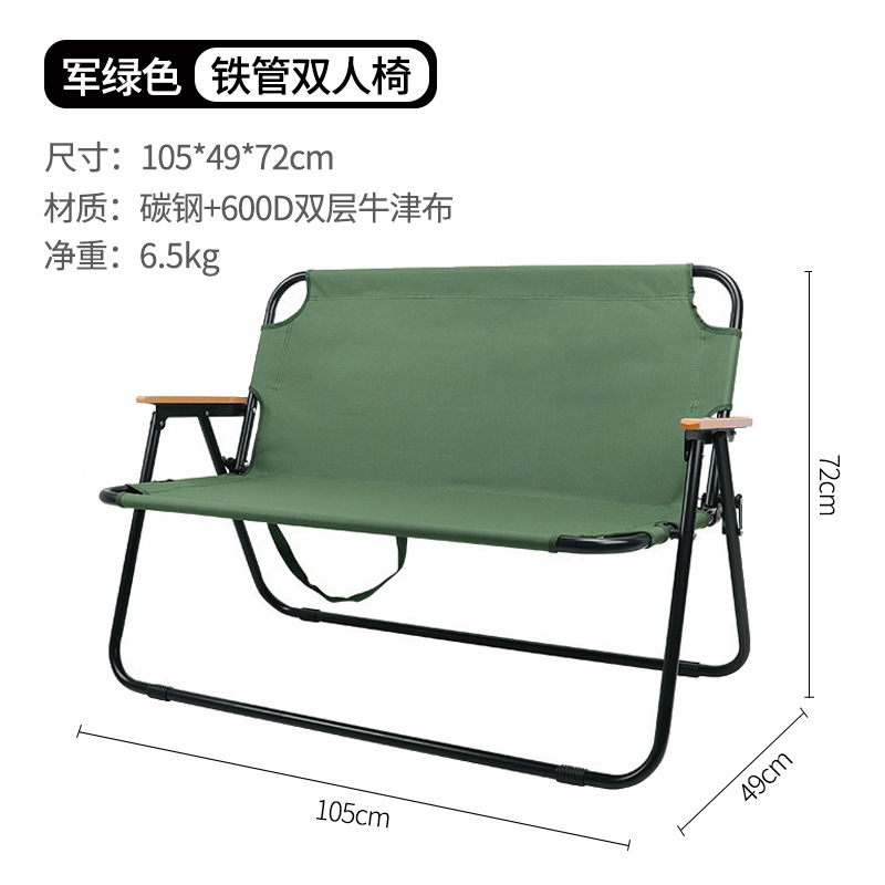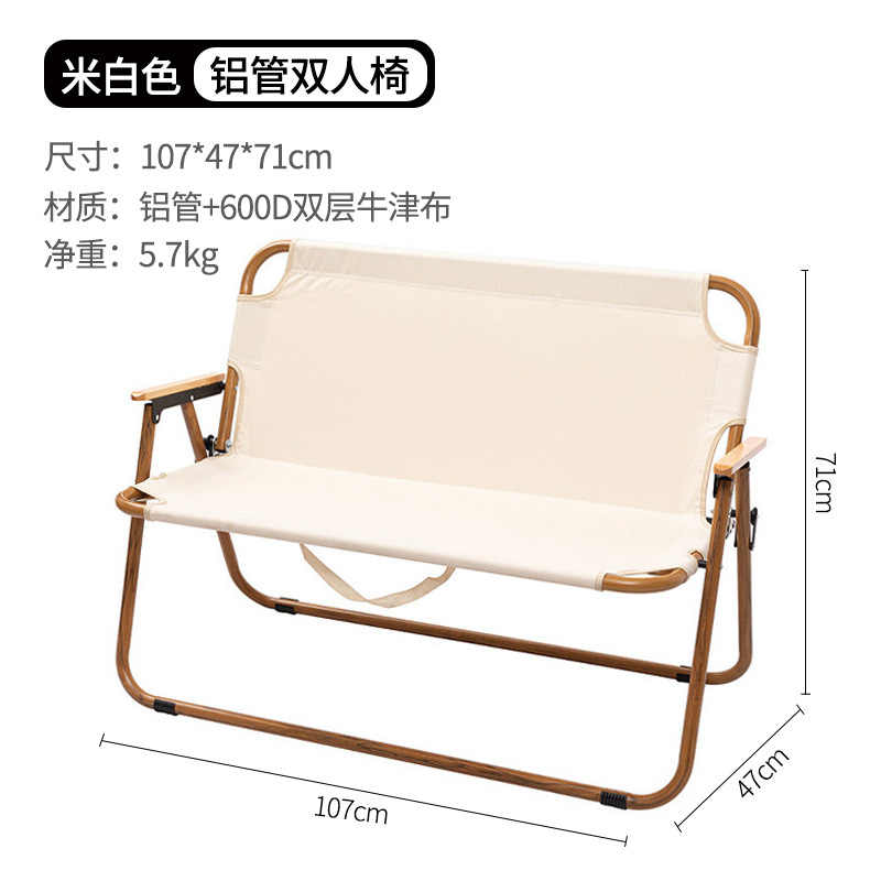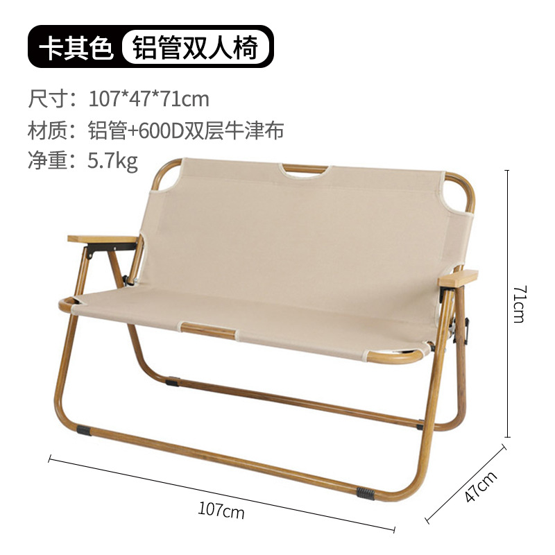 • 나뭇결 스프레이 알루미늄 튜브 더블 체어 - 카키