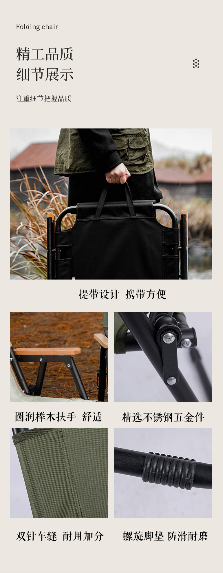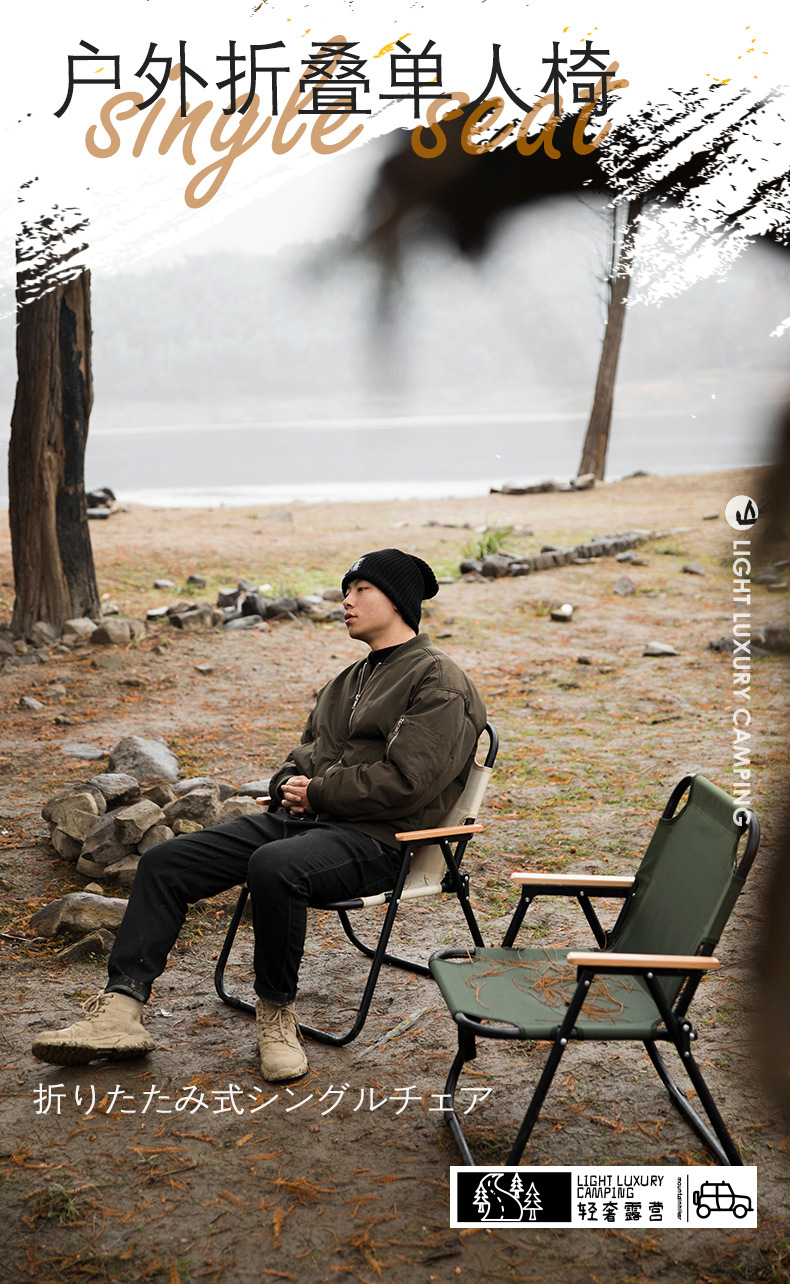 • 나뭇결 스프레이 알루미늄 튜브 싱글 체어 - 카키