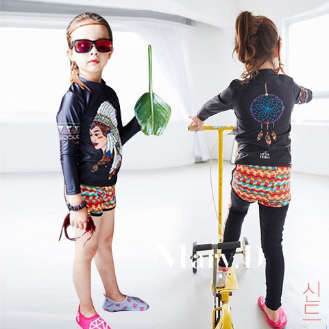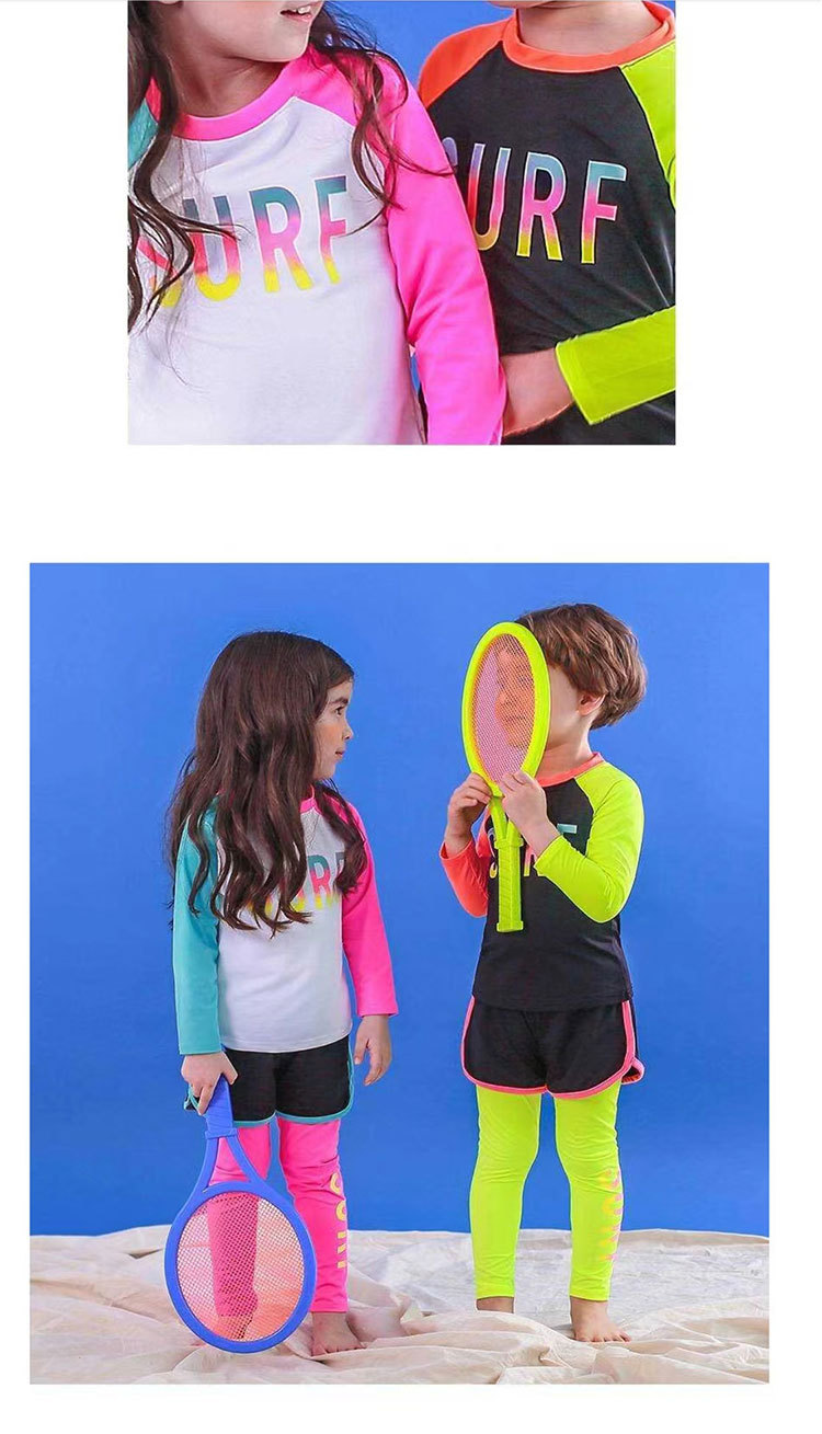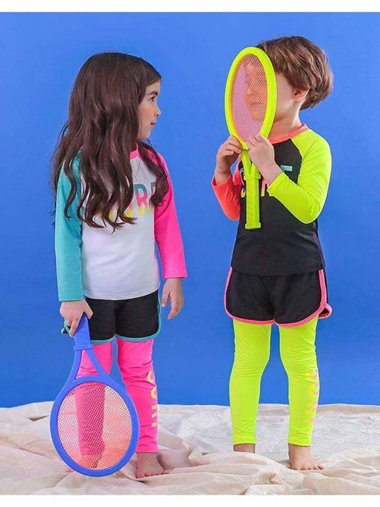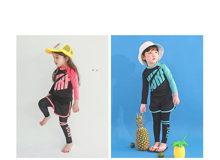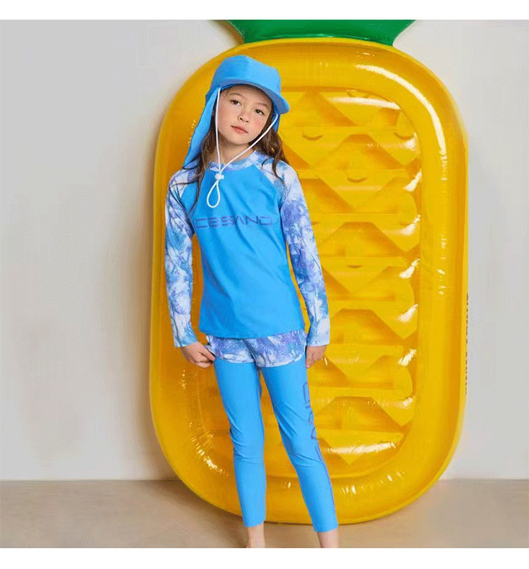 2024 새로운 어린이 수영복 분할 3 종 세트 소녀 중 · 빅 키즈 세트 빠른 건조 긴팔 선 스크린 소년의 다이빙