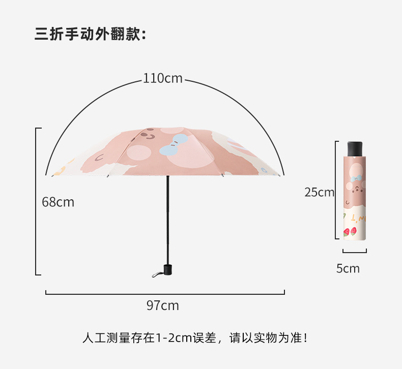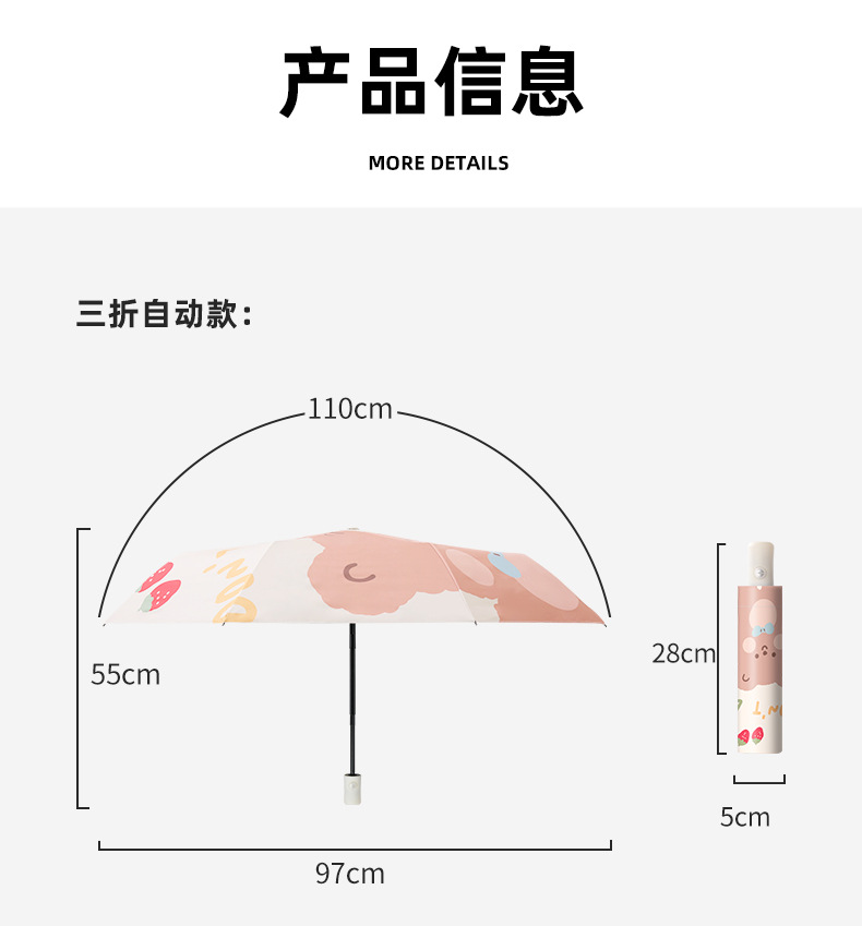 자동 우산 만화 자외선 방지 태양 우산 햇빛과 비 이중 목적 검은 고무 휴대용 양산 접는 우산스토어 가기