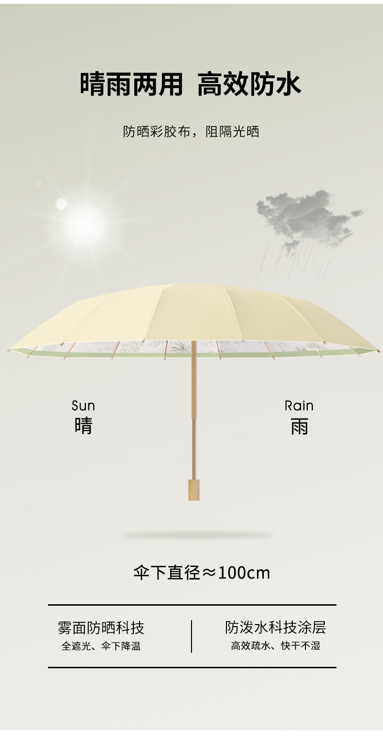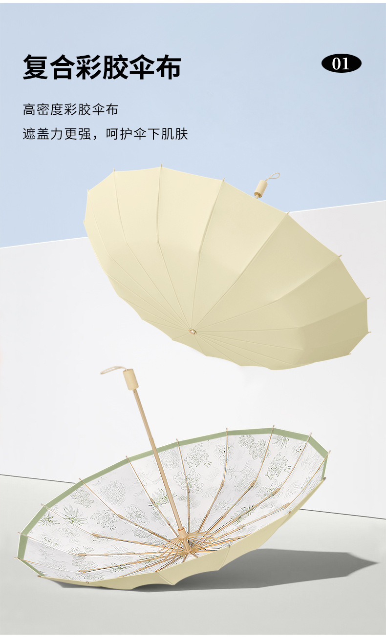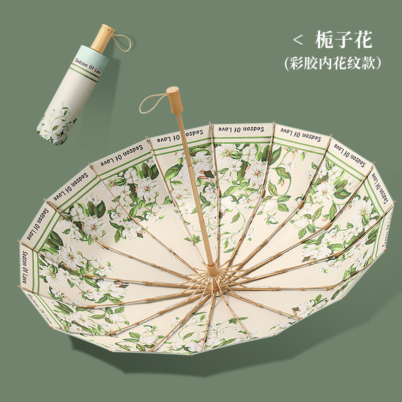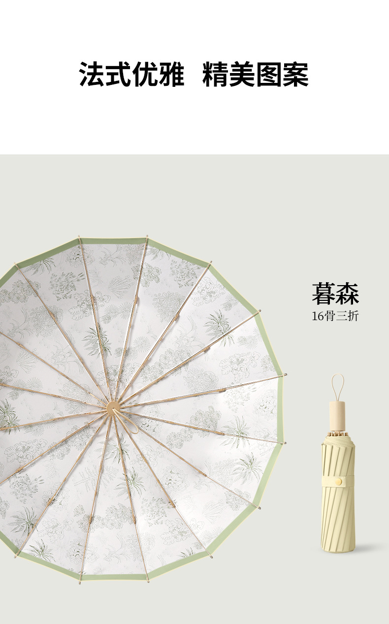 16 본 3 중 차양 우산 새로운 복합 컬러 접착제 태양 보호 UV 보호 프랑스 복고풍 맑고 비 이중 사용 태양 우산
