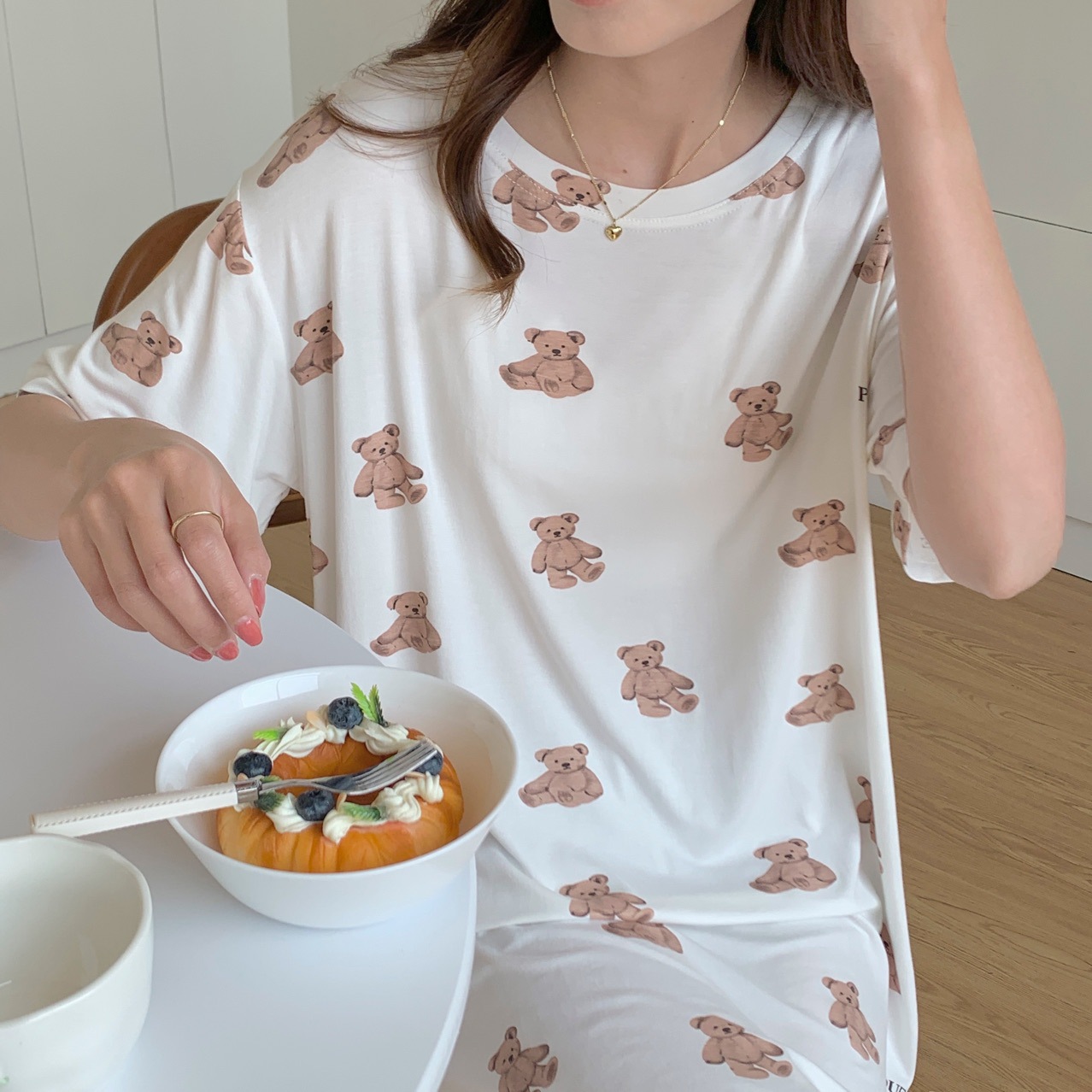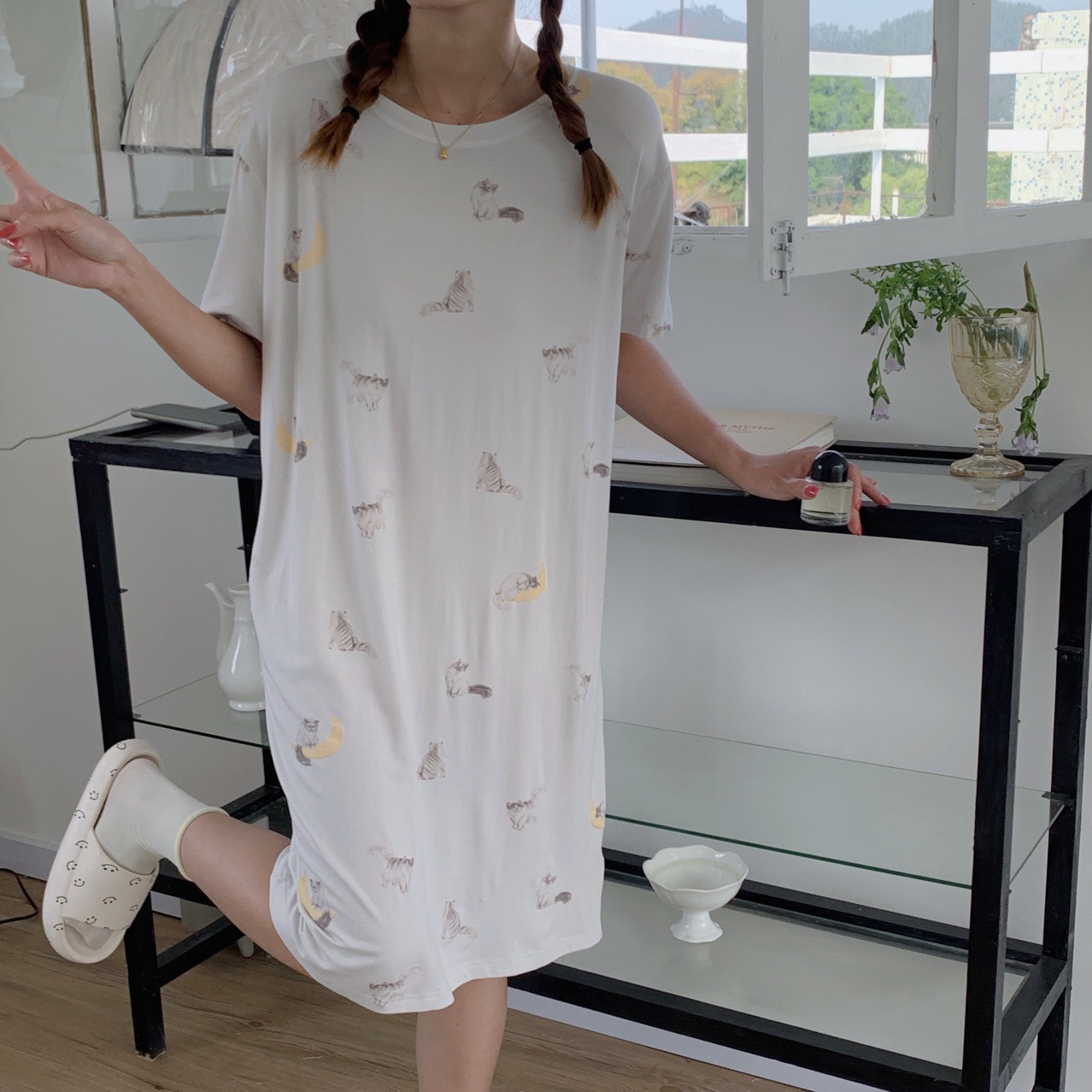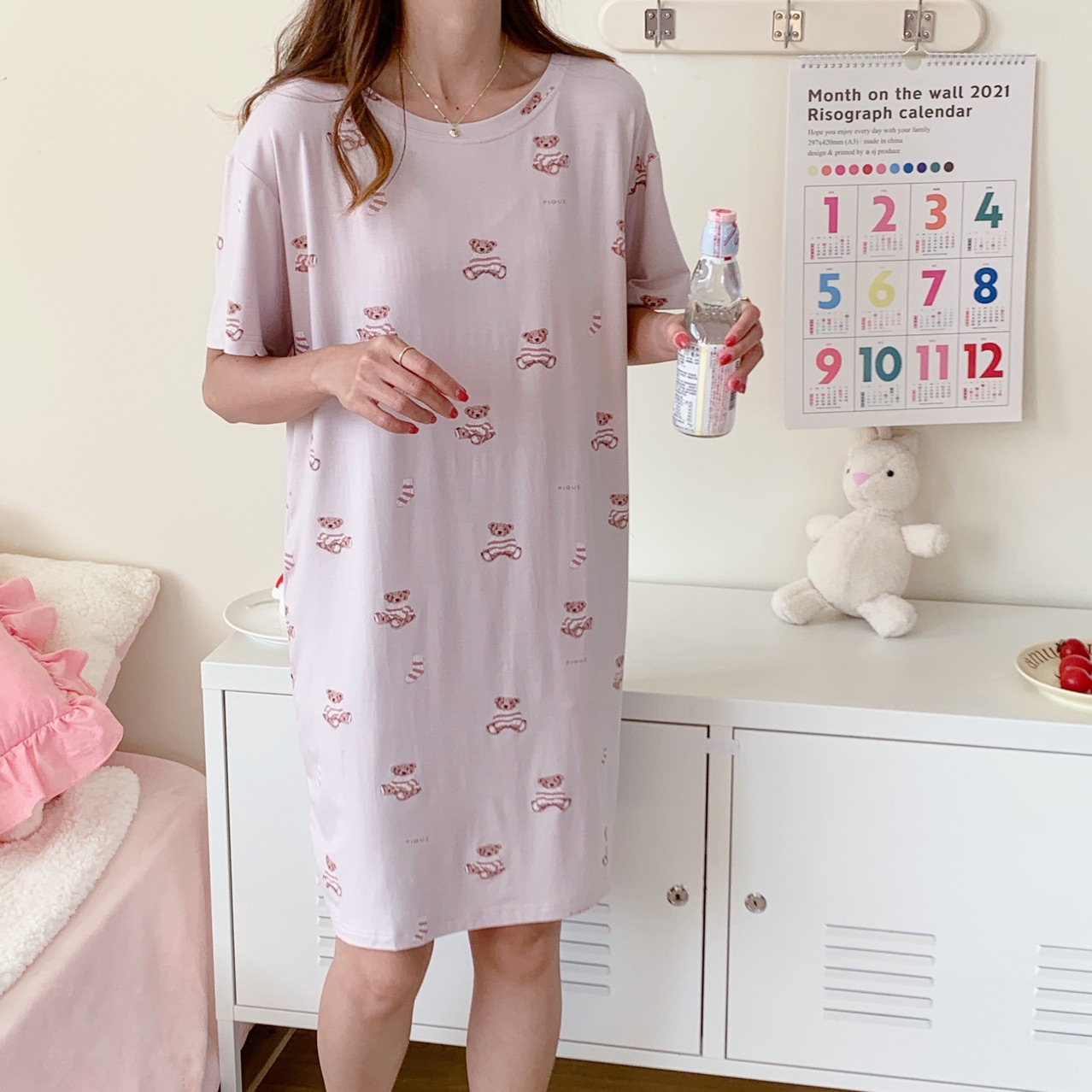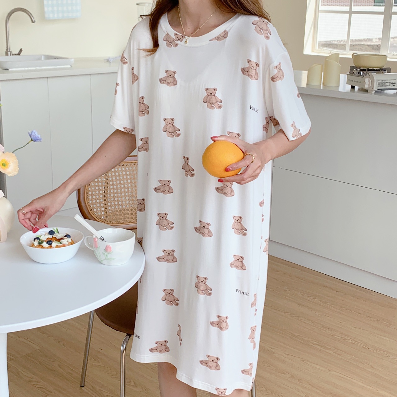 Gp 귀여운 만화 잠옷 여성 곰 케이크보다 곰 고양이 반팔 긴 치마 가정 옷 도매스토어 가기