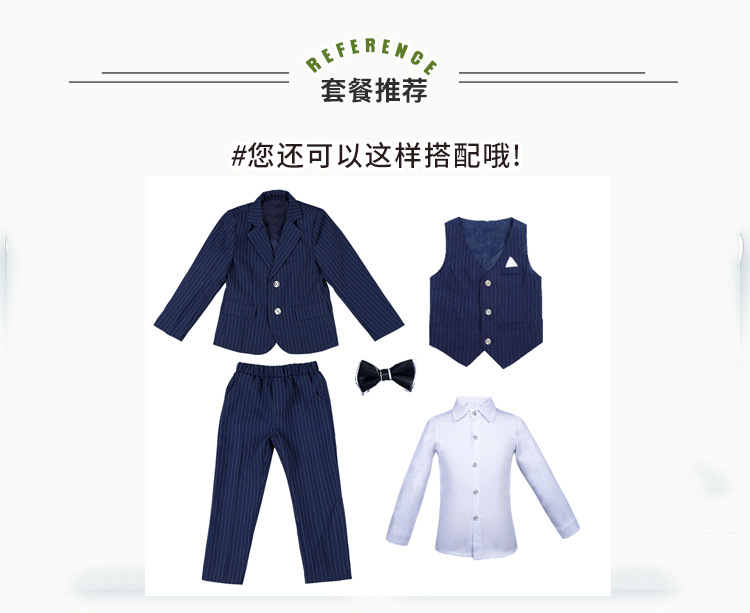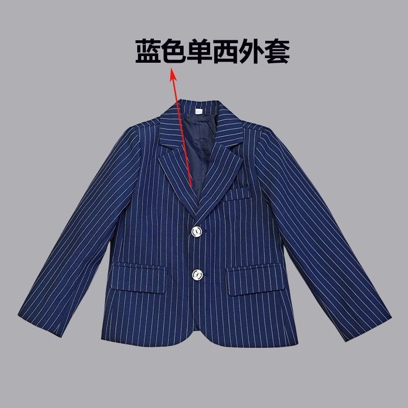 • 파란색 4 피스 세트 (재킷 + 바지 + 셔츠 + 나비 넥타이)