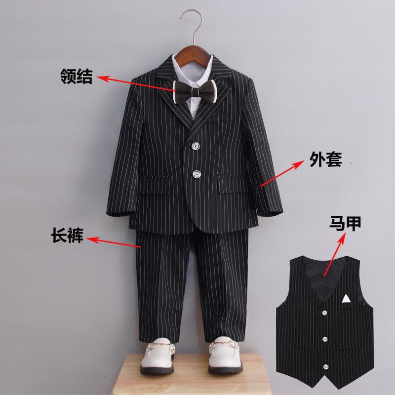 소년 원피스 봄과 가을 스트라이프 세트 세트 어린이 3 종 세트 어린이 꽃 어린이 피아노 연주 세트스토어 가기