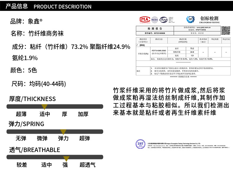 材质:竹纤维(粘纤、再生纤维素纤维)+聚酯纤维+氨纶