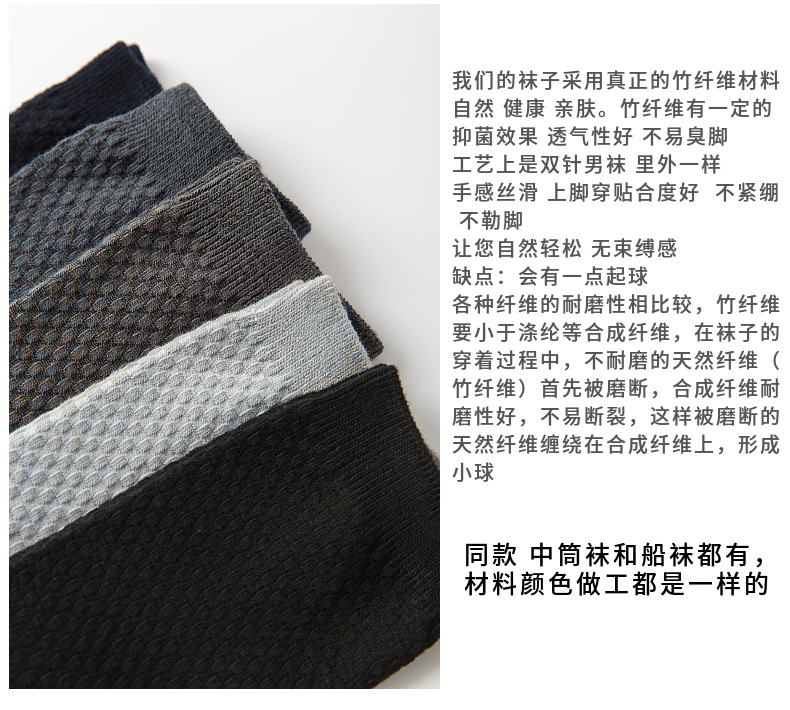 竹纤维中筒男士商务袜 双针工艺 表里如一
