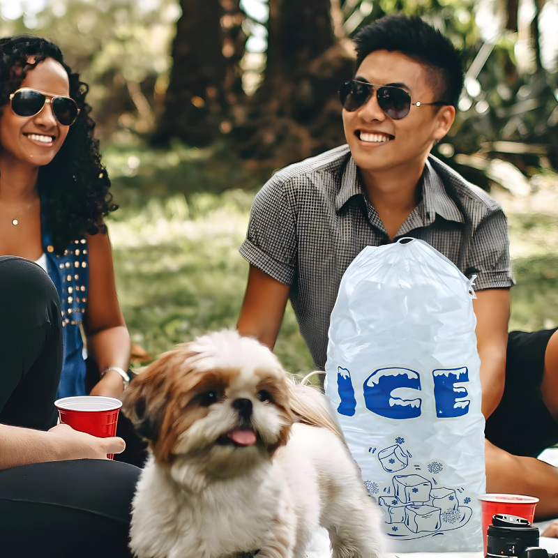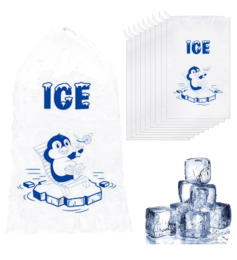 20파운드 투명 식품 등급 PE 조임끈 아이스백, 조임끈 포켓 도매 아이스 큐브 백, 일회용 아이스백스토어 가기