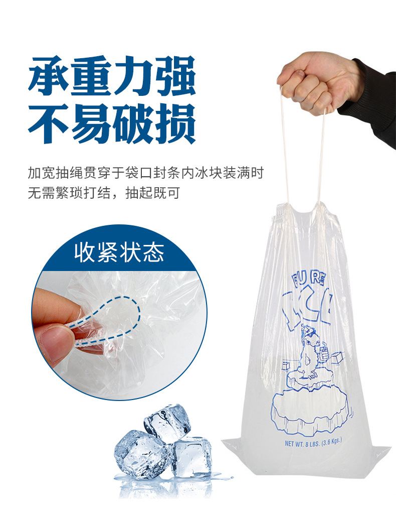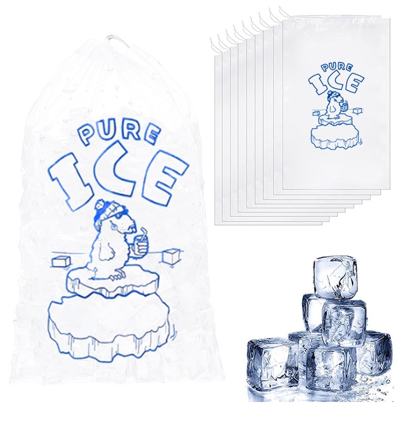 20파운드 투명 식품 등급 PE 조임끈 아이스백, 조임끈 포켓 도매 아이스 큐브 백, 일회용 아이스백