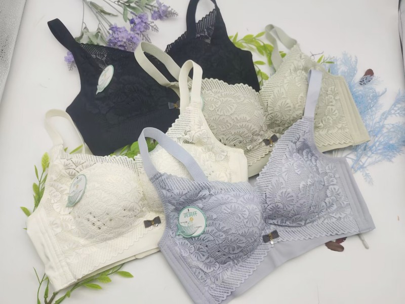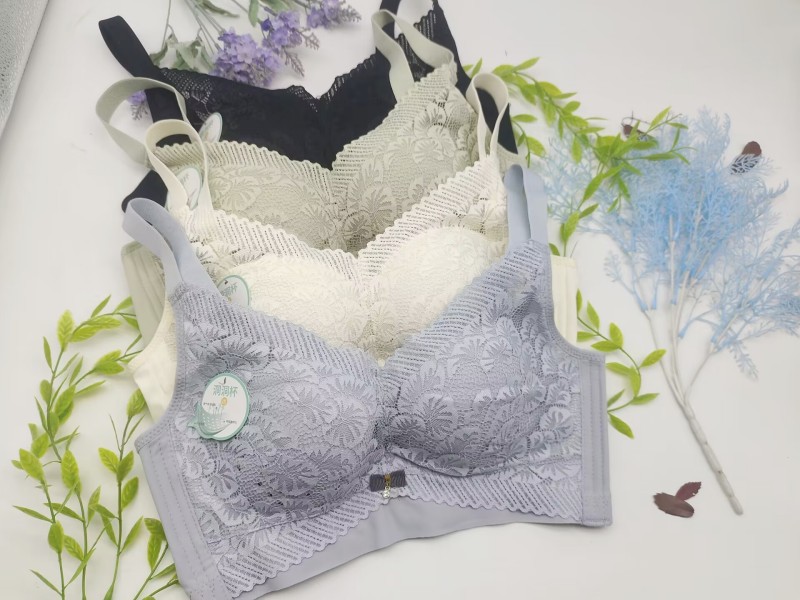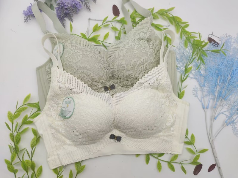 스틸 링 레이스 사이드 컬렉션 제조업체가없는 초박형 통기성 홀 컵 브라 편안한 비자성 얇은 컵 조절 속옷