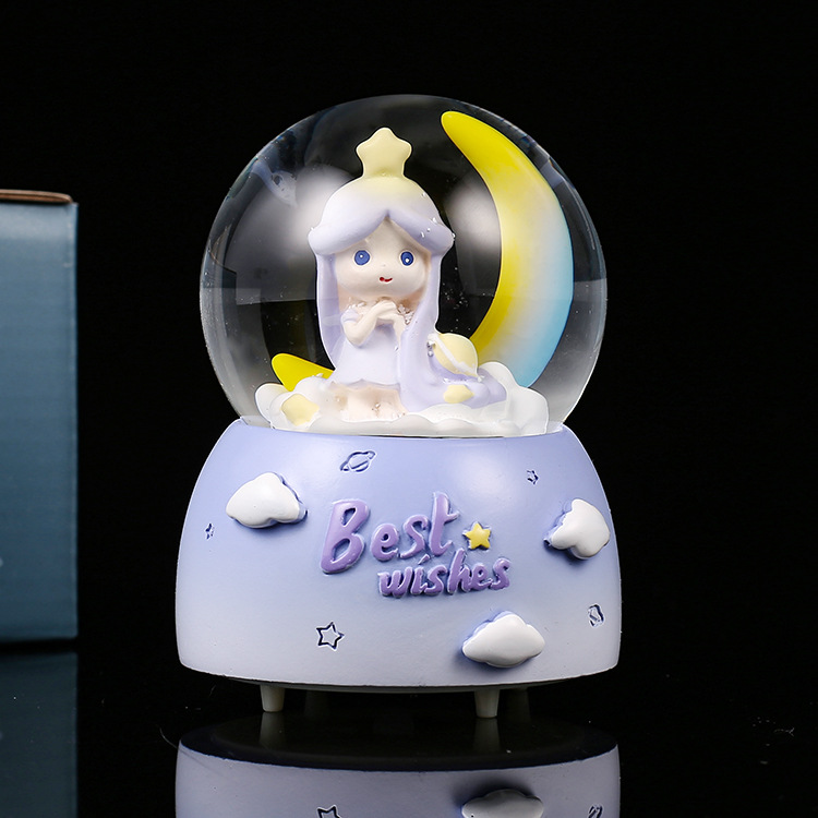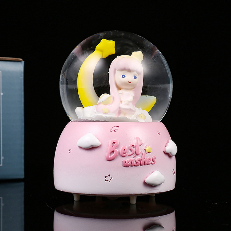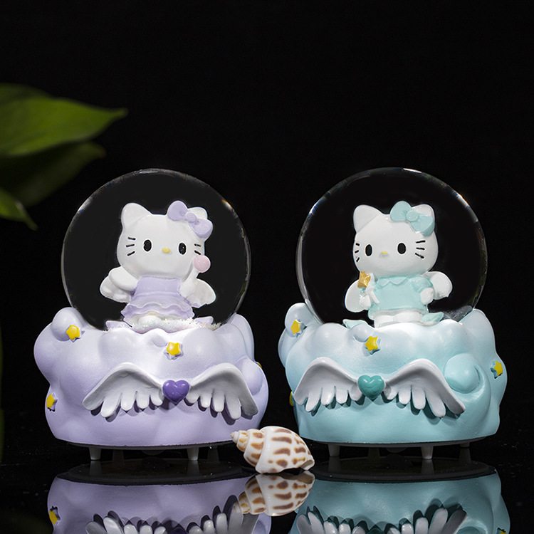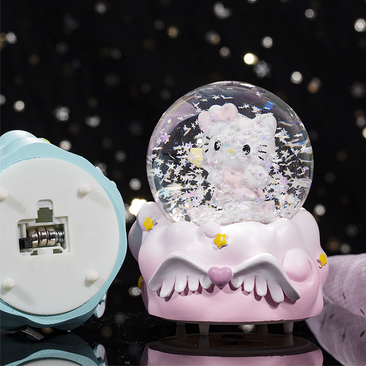 천사 날개 어린이를위한 귀여운 새끼 고양이 미니 발광 수정 구슬 생일 선물 학생 데스크탑 창조적 인 장식품