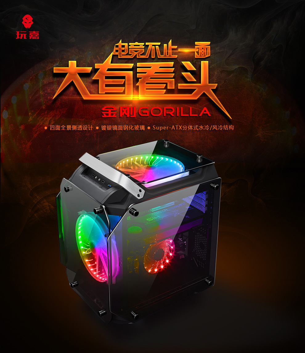 국경 간 데스크탑 컴퓨터 케이스 킹콩 전면 투명 인터넷 카페 e 스포츠 케이스 ATX 수냉식 공기 냉각 케이스스토어 가기
