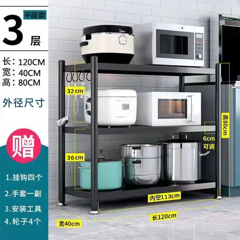 업그레이드 된 탄소강 주방 선반 바닥 서 계층화 된 가정용 전자 레인지 이동식 저장 선반 도매스토어 가기