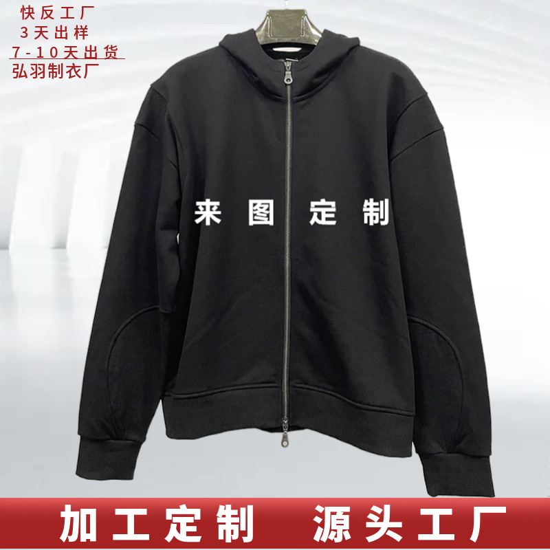 소스 공장에서 맞춤형 500g 자수 로고 지퍼 스웨트 셔츠 남성용 스레드 스플라이싱 디자인 탑 재킷스토어 가기