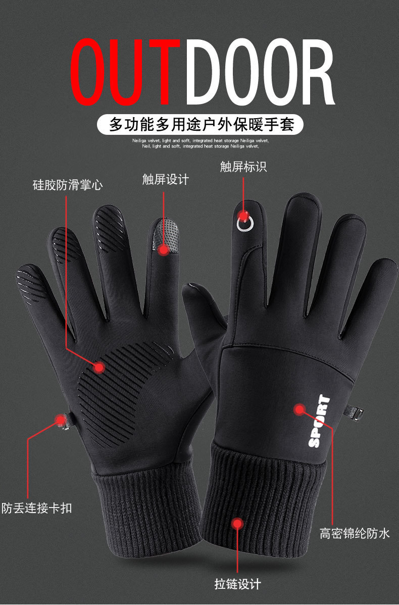 남성용 사이클링 장갑 터치스크린 겨울용 플러스 벨벳 학생용 미끄럼 방지 성인용 등산용 남녀공용 방풍 방수 보온스토어 가기