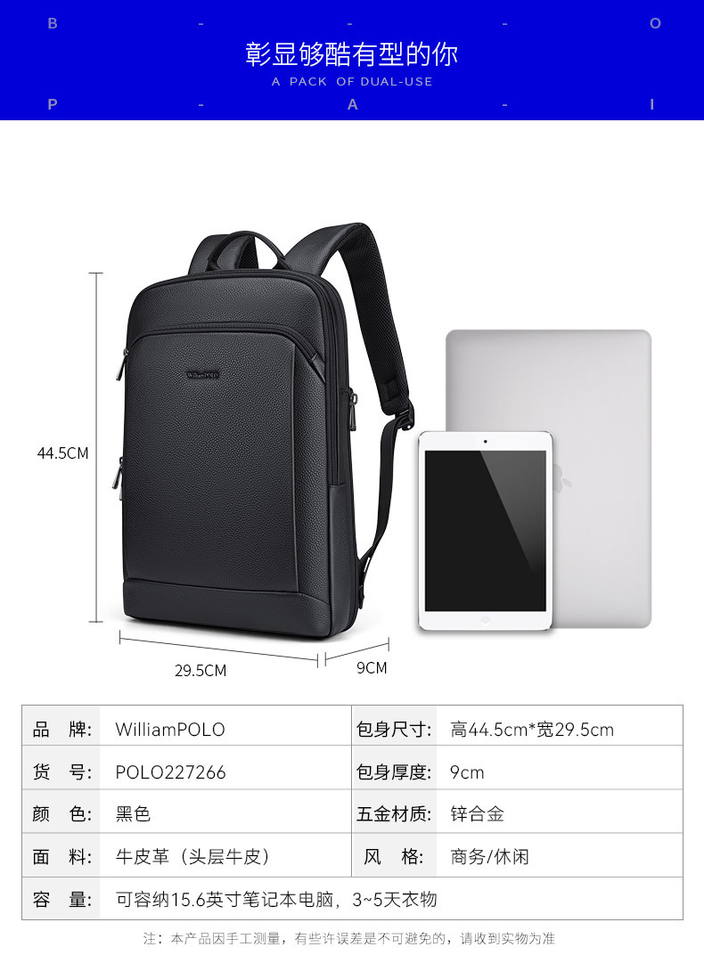 킹 폴 백팩 배낭 남성용 비즈니스 정품 가죽 탑 레이어 소가죽 대용량 패션 여행 가방 컴퓨터 가방
