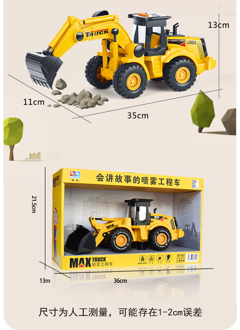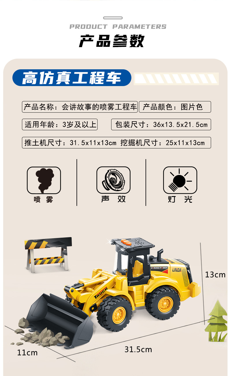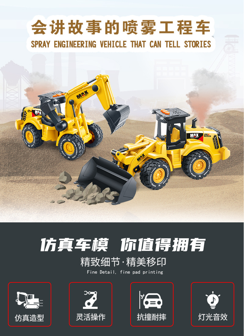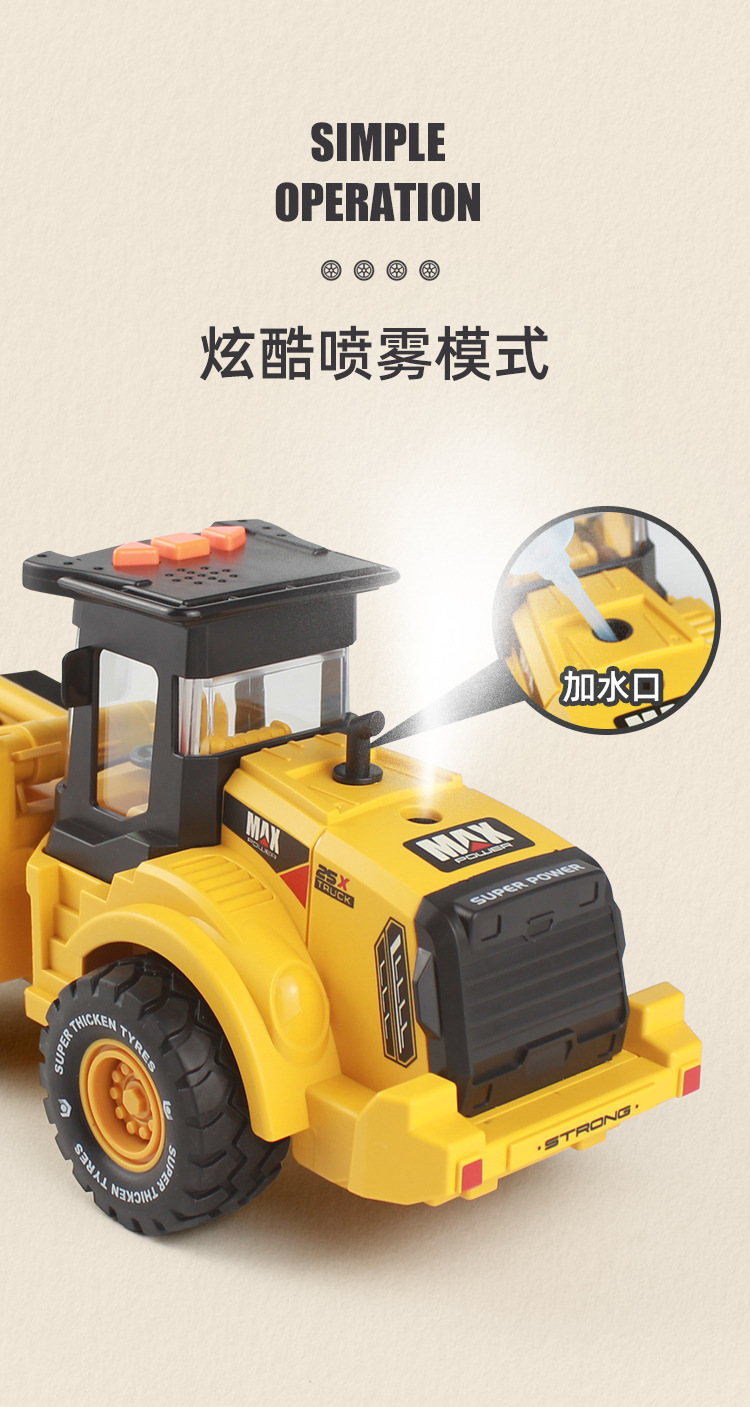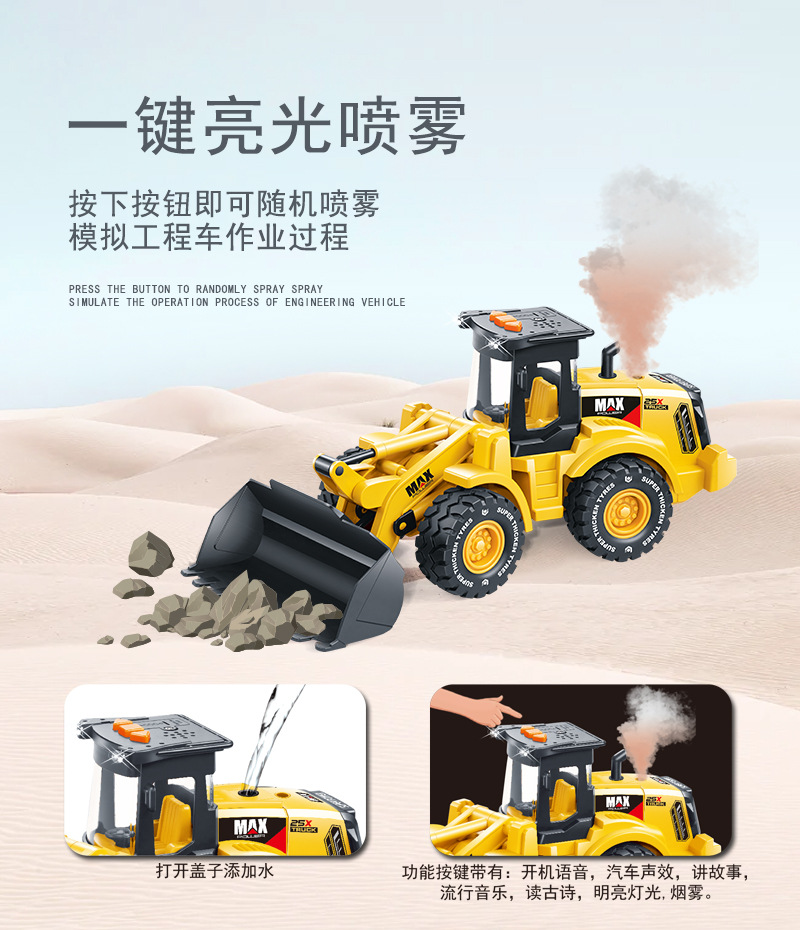 전기 어린이 스프레이 굴삭기 장난감 불도저 엔지니어링 차량 퍼즐 조기 교육 소년 장난감 자동차 모형 도매