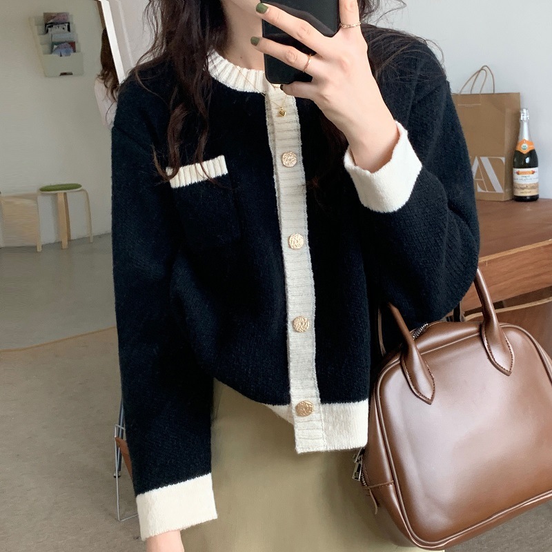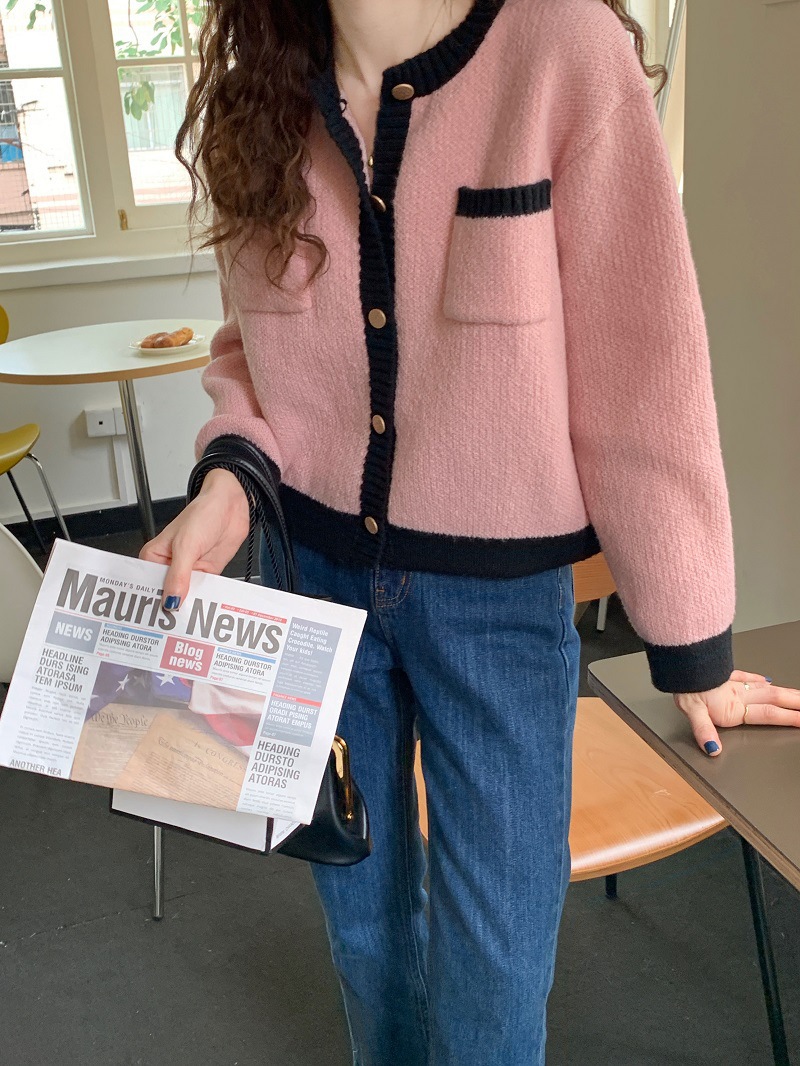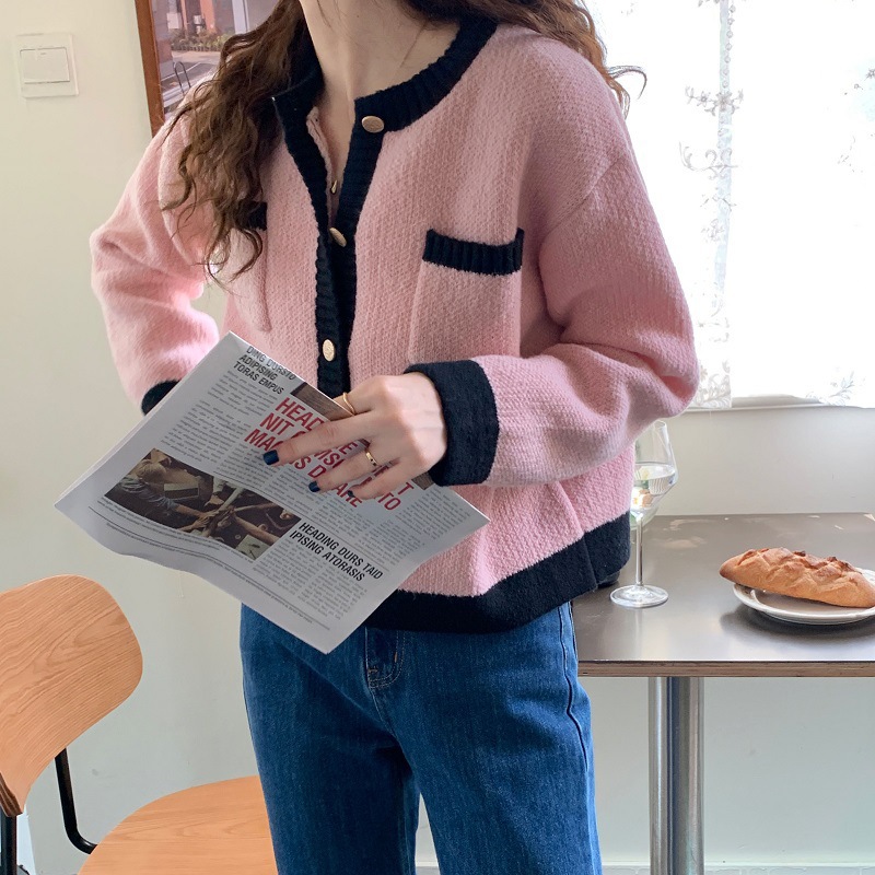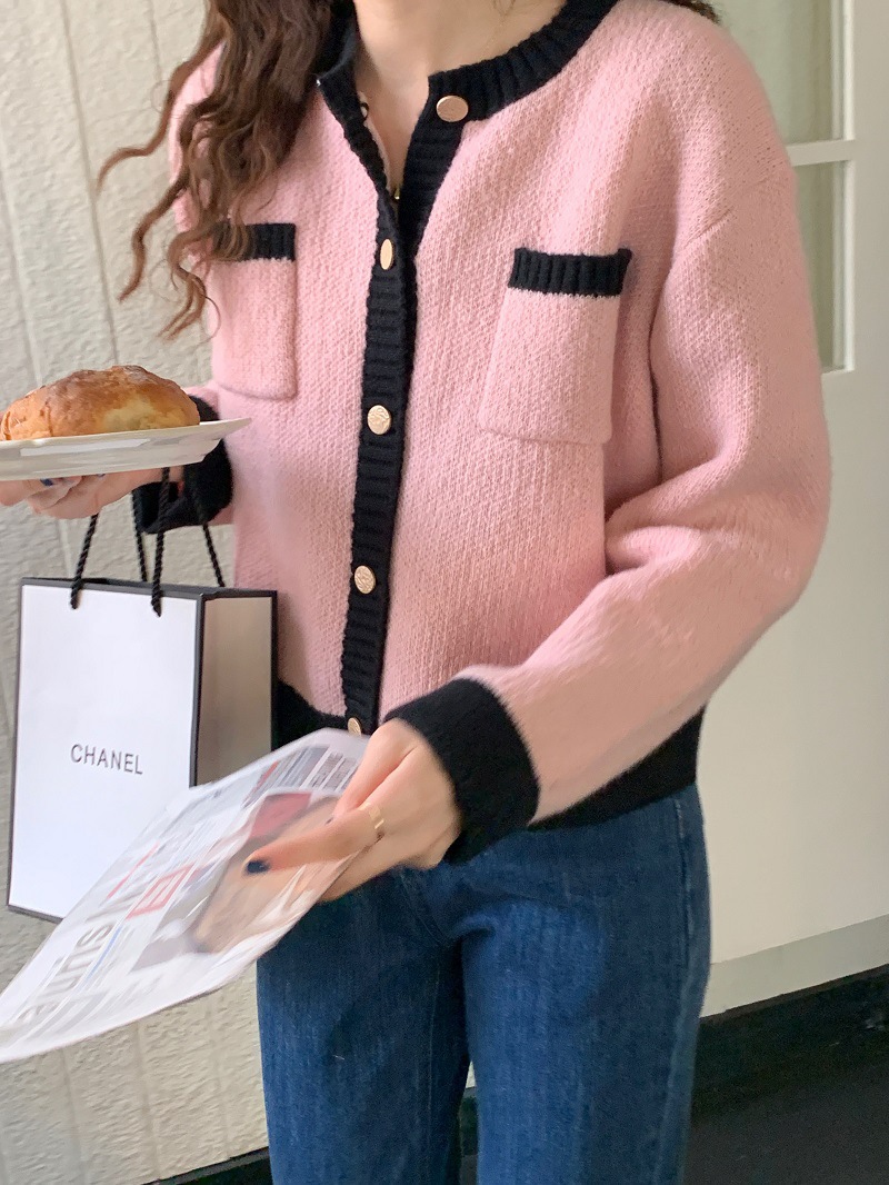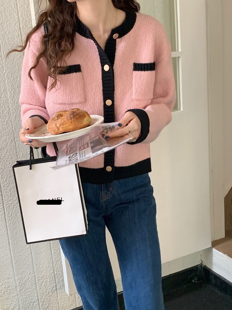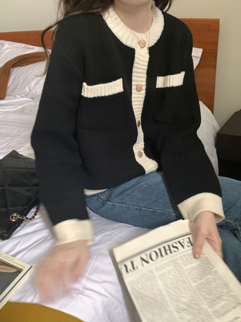여성용 배색 니트 가디건 2026 봄 가을 겨울 신상 라운드넥 샤넬 스타일 포켓 슬림핏 스웨터 아우터스토어 가기