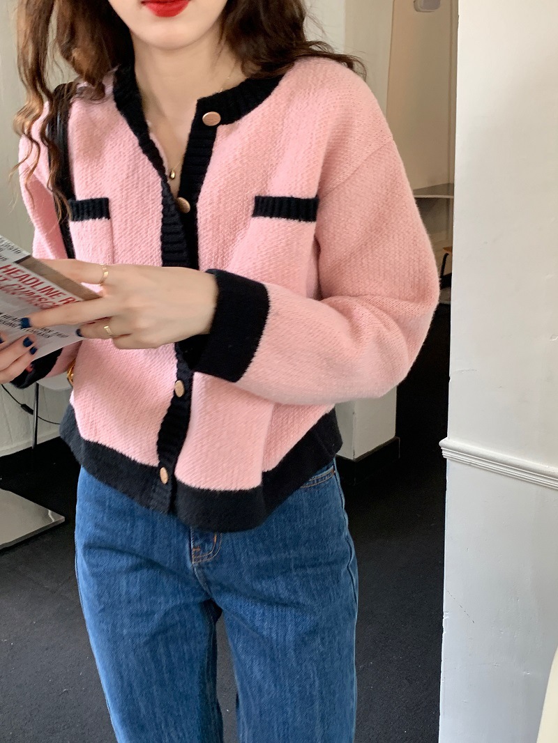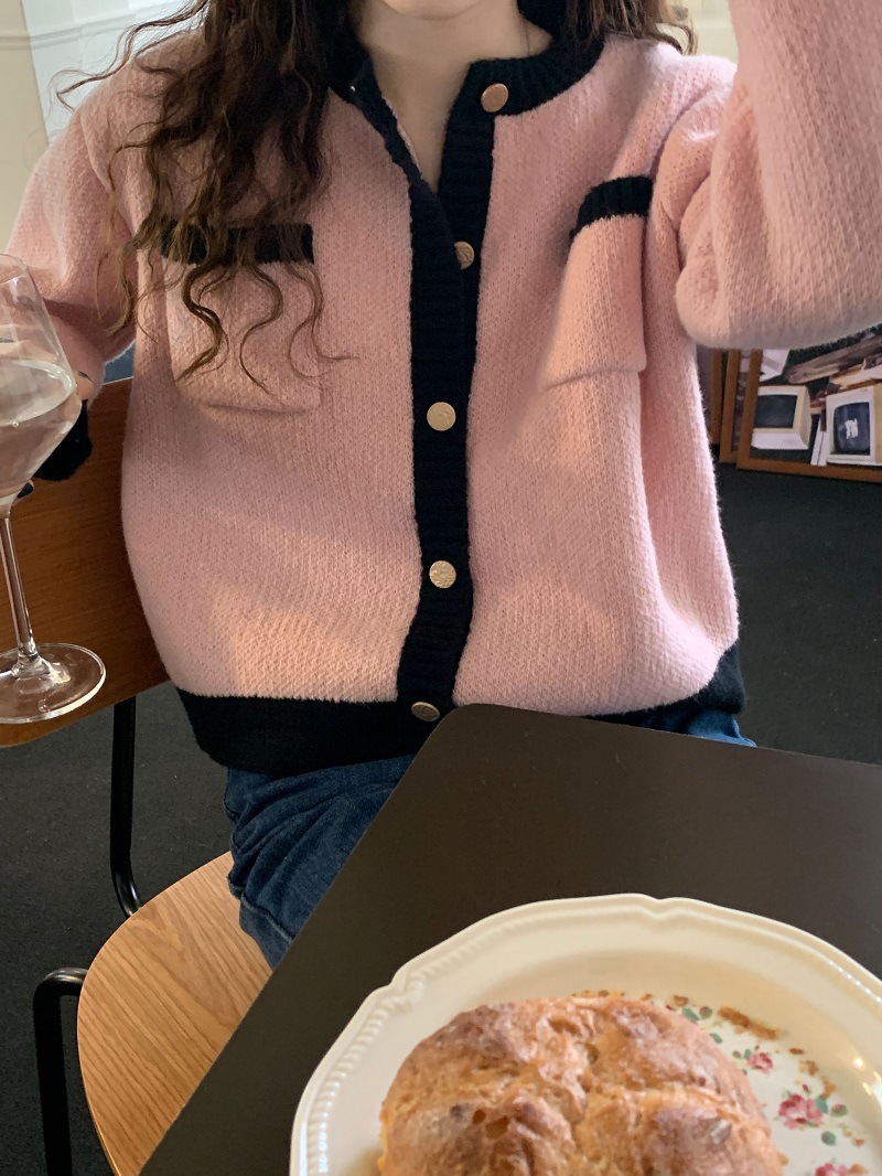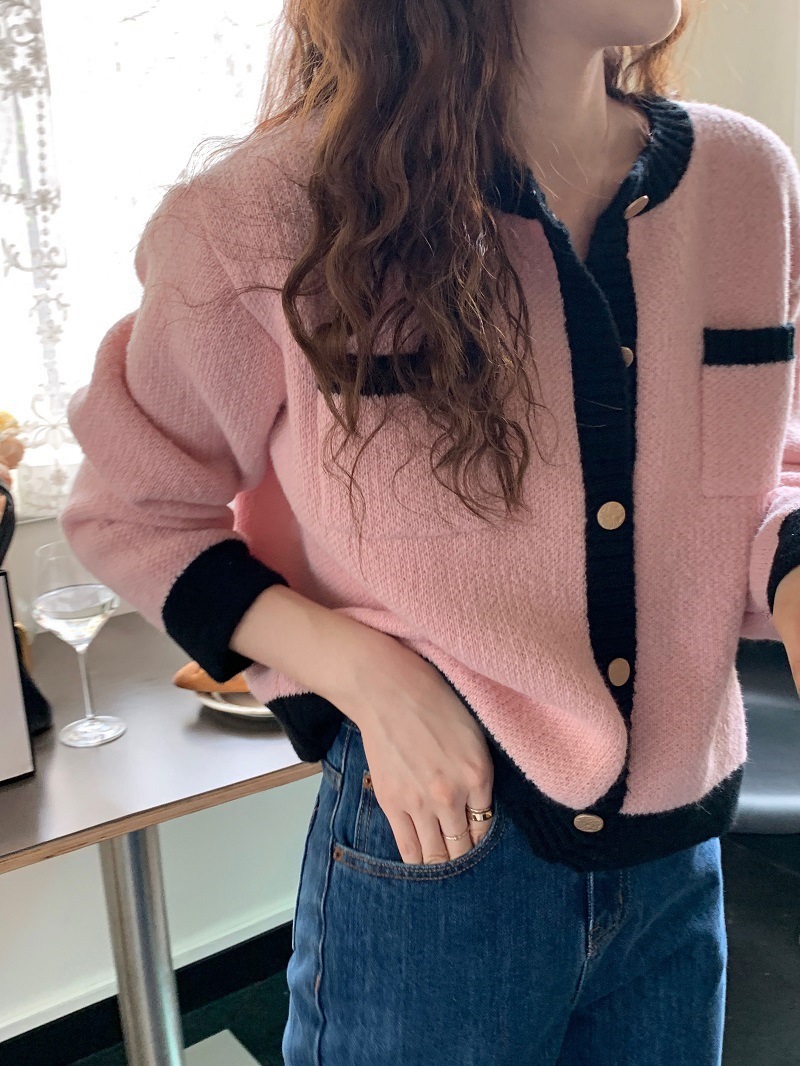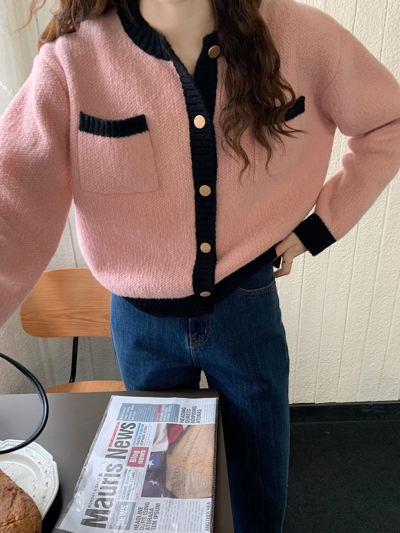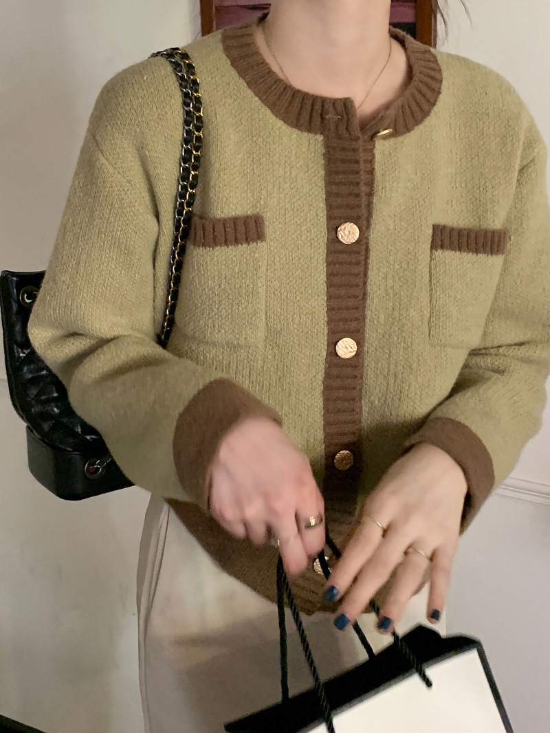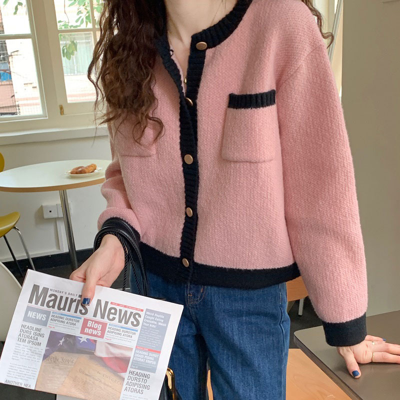 여성용 배색 니트 가디건 2026 봄 가을 겨울 신상 라운드넥 샤넬 스타일 포켓 슬림핏 스웨터 아우터스토어 가기