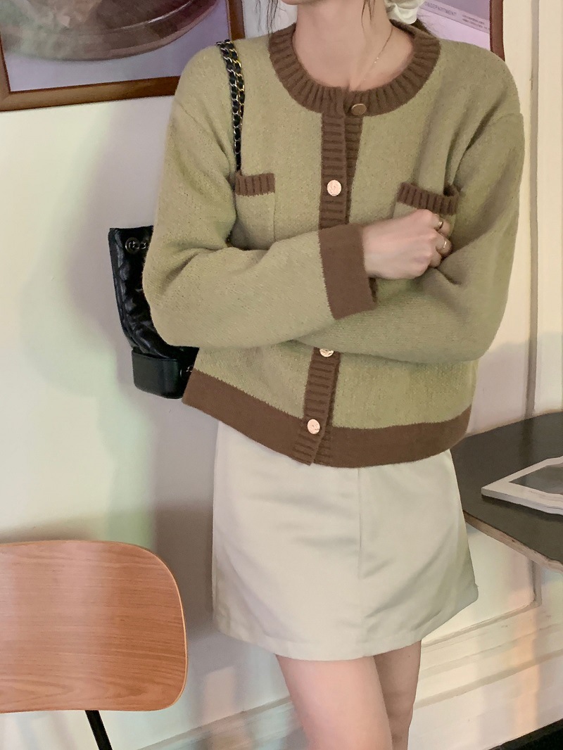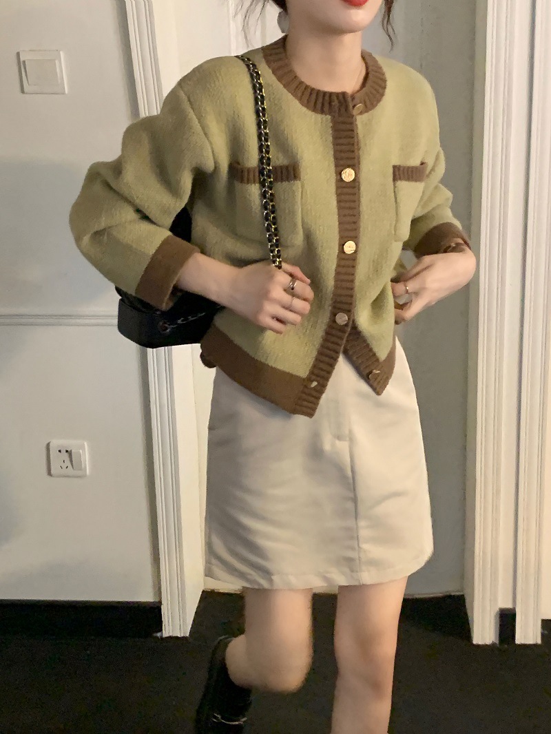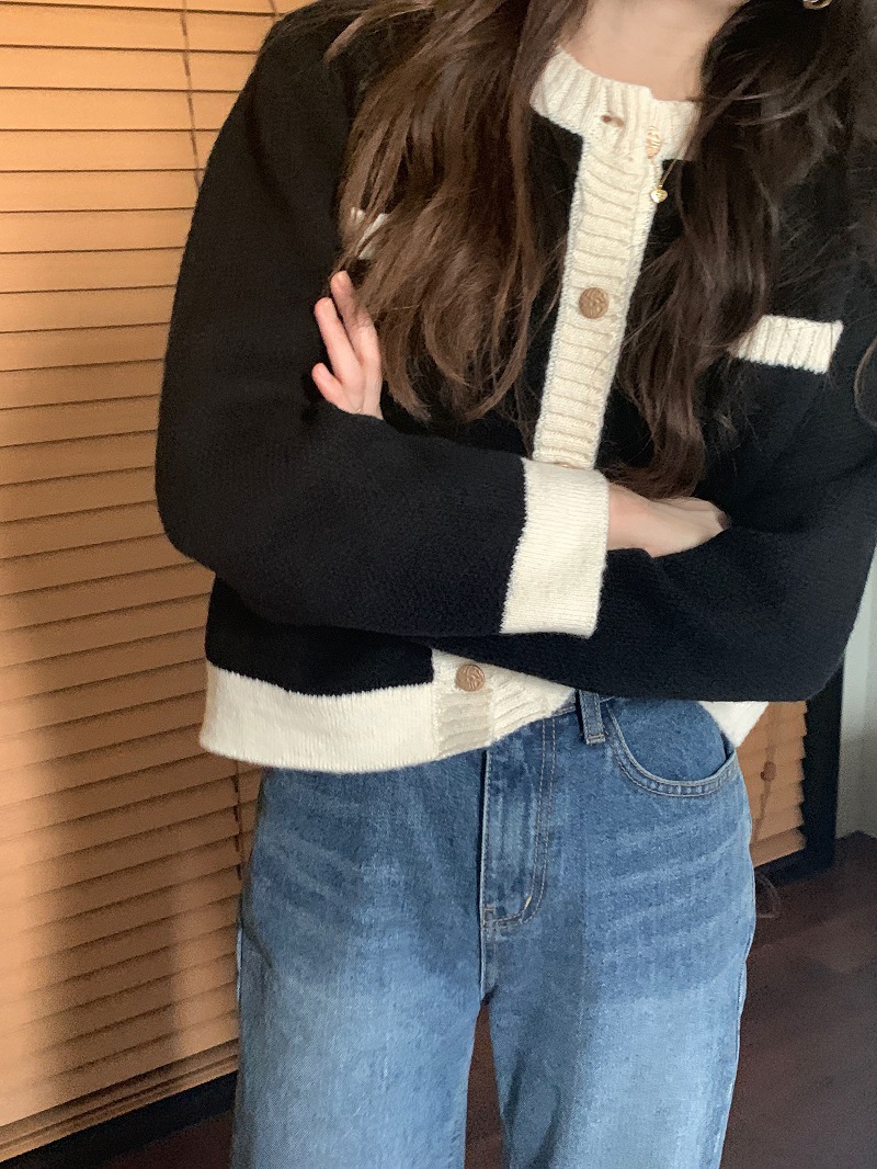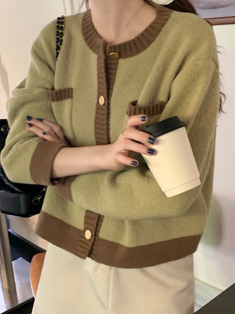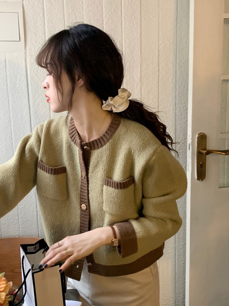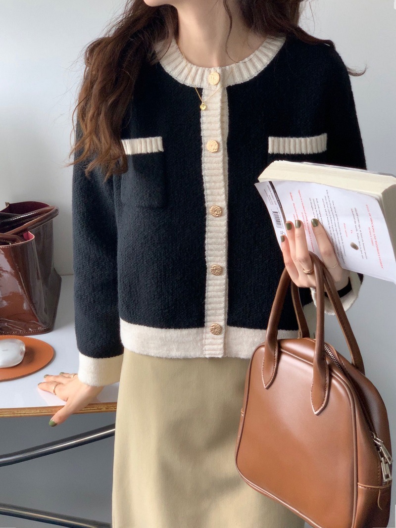 여성용 배색 니트 가디건 2026 봄 가을 겨울 신상 라운드넥 샤넬 스타일 포켓 슬림핏 스웨터 아우터스토어 가기