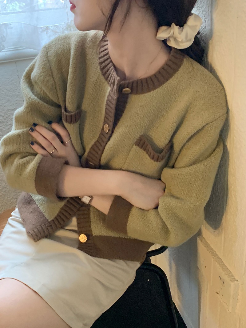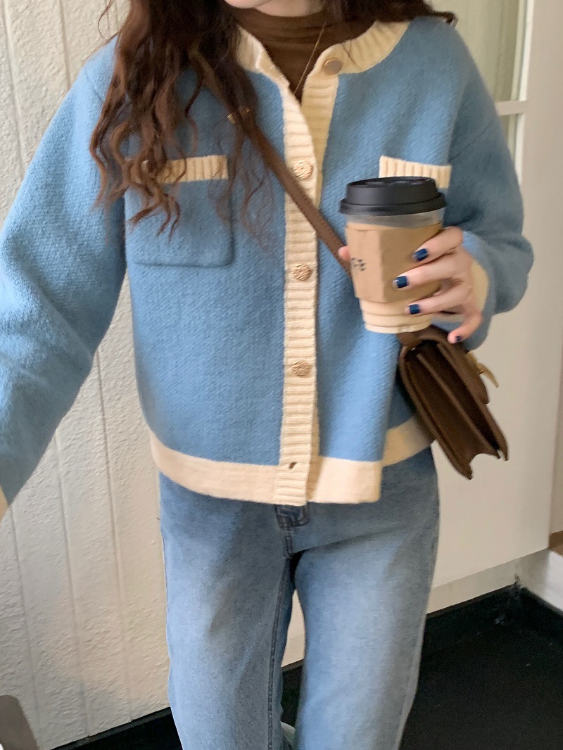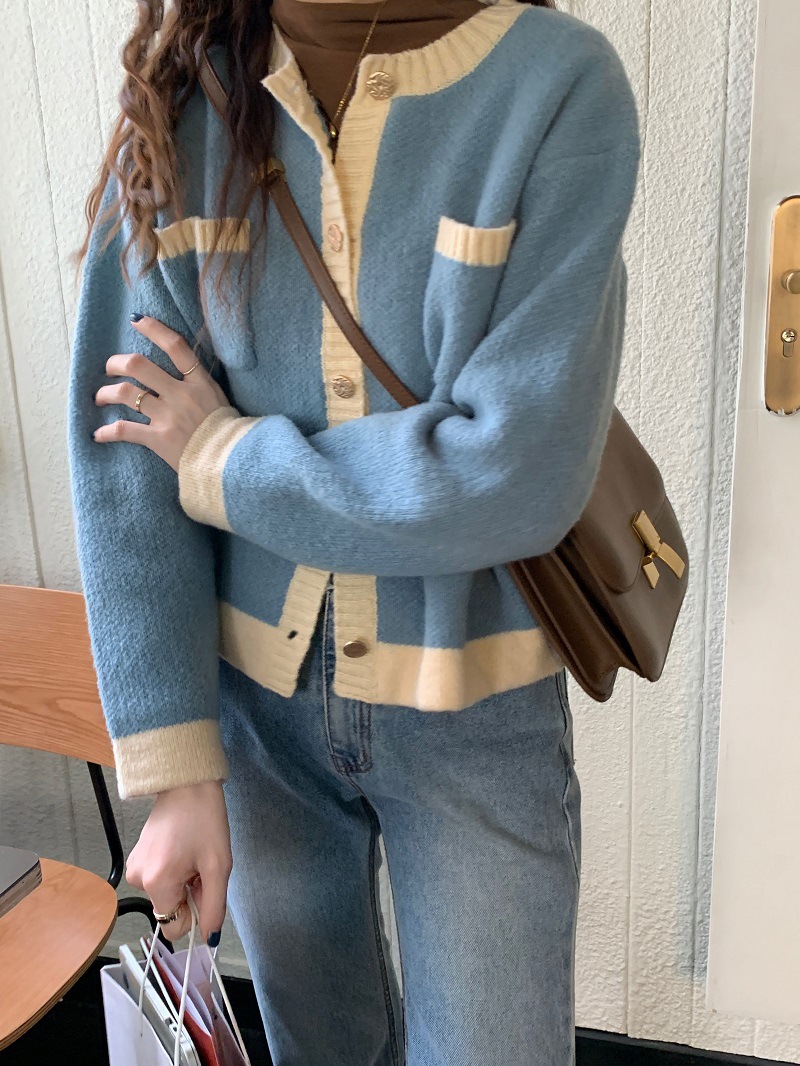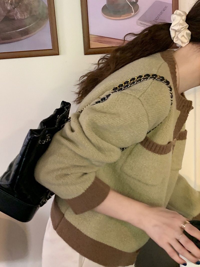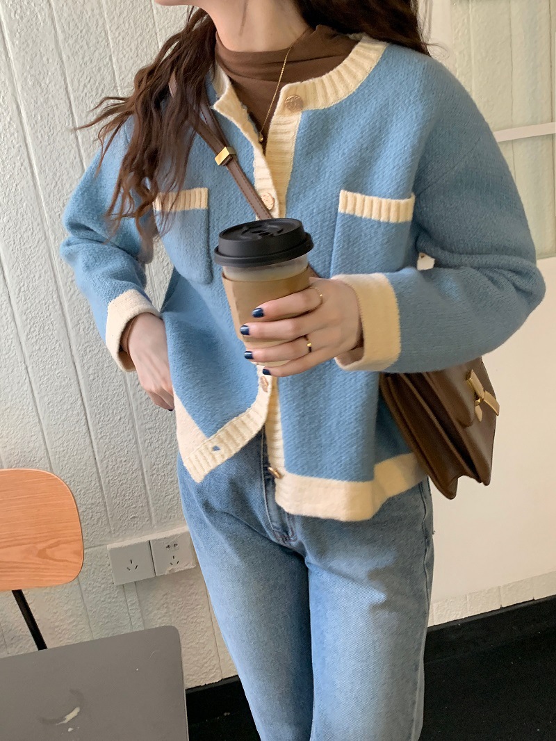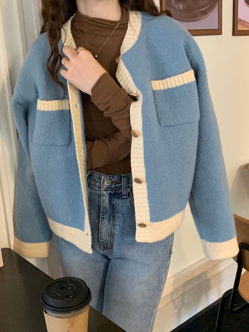 여성용 배색 니트 가디건 2026 봄 가을 겨울 신상 라운드넥 샤넬 스타일 포켓 슬림핏 스웨터 아우터스토어 가기