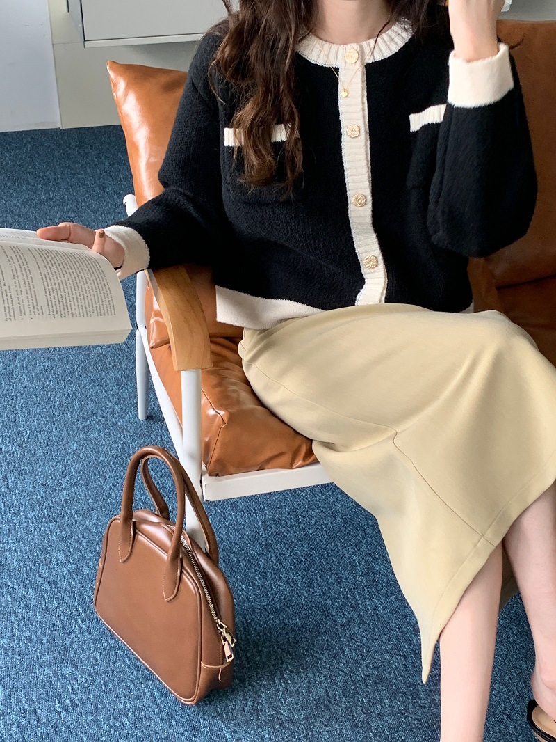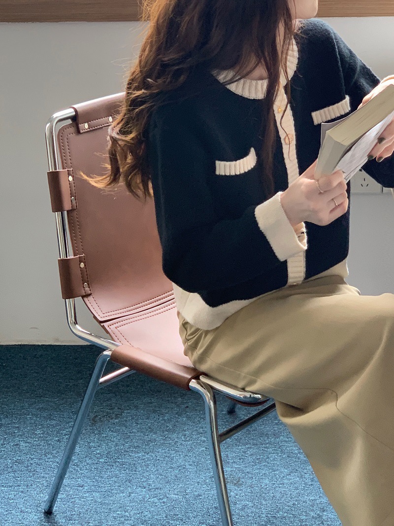 여성용 배색 니트 가디건 2026 봄 가을 겨울 신상 라운드넥 샤넬 스타일 포켓 슬림핏 스웨터 아우터