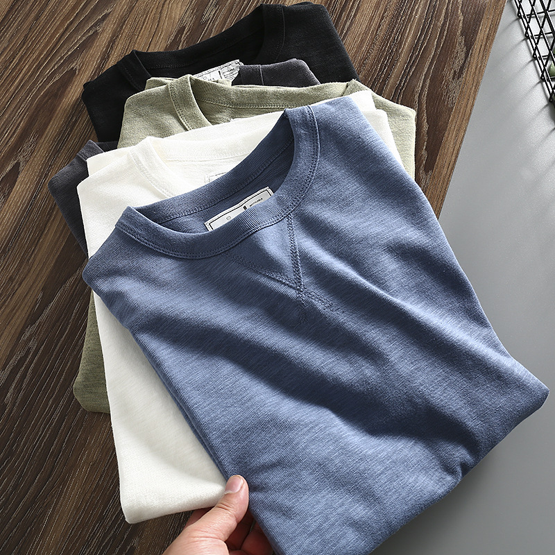 편안한 대나무 면 한 세대 오프라인 매장 상품 남성 흑백 캐주얼 크루 넥 반팔 티셔츠 베이스 셔츠스토어 가기