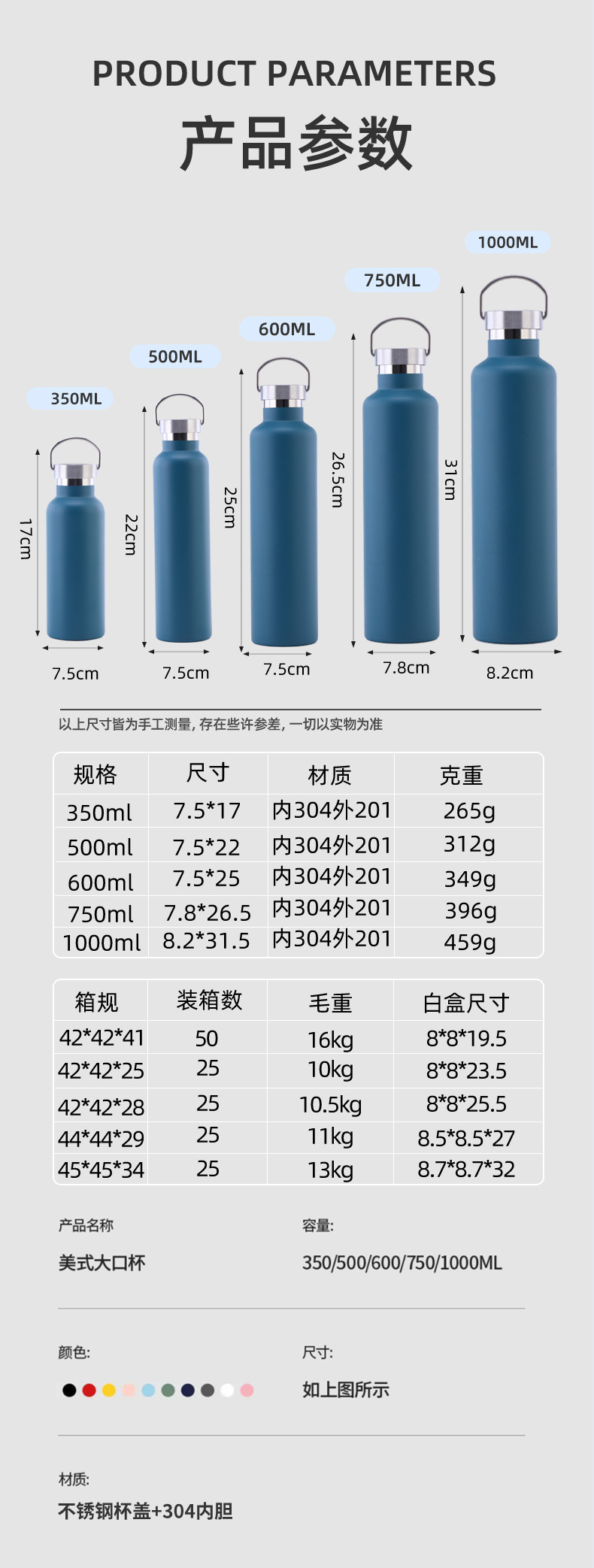 크로스보더 미국식 대용량 보온병 304 스테인리스 대용량 물병 야외 스포츠 등산 자전거 물통