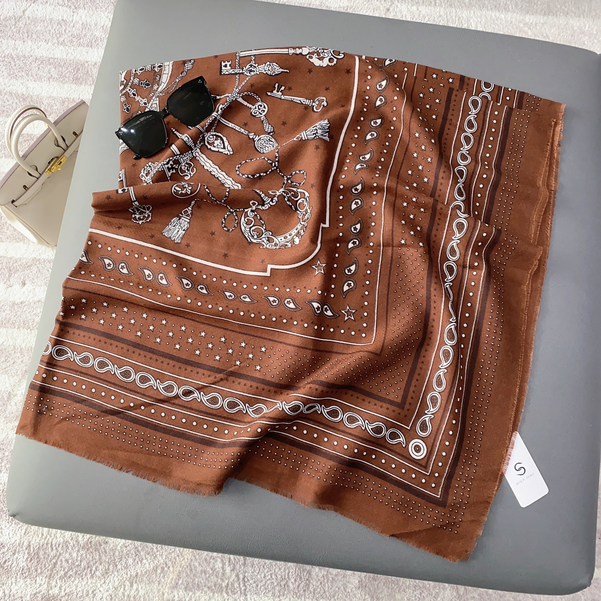 새로운 스타일 인쇄 술 대형 스퀘어 여성용 봄 얇은 유행 모든 매치 실크 스카프 숄 엄마를위한 어머니의 날 선물