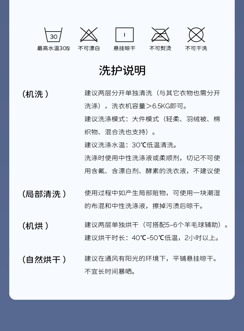 深色床品第一次洗涤时会有少许浮色,属于正常现象。经过一两次洗涤后,此情况会消,可放心使用。床品为手工剪裁会存在正负5cm的误差,属于正常情况,非质量问题。
