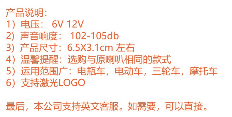 전기 자동차 경적 보편적 인 6V 12V 그물 커버 모양 방수 큰 소리 배터리 세발 자전거 경적스토어 가기
