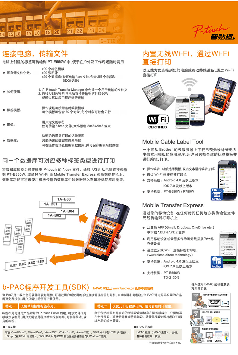 브라더 PT-E550W 라벨 프린터 전원 통신 네트워크 케이블 라벨링 기계 무선 WIFI 인쇄 핸드 헬드