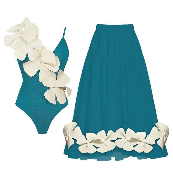 2024 유럽과 미국의 새로운 스타일 수영복 레이스 업 작은 신선한 꽃 수영복 및 랩 원피스 세트