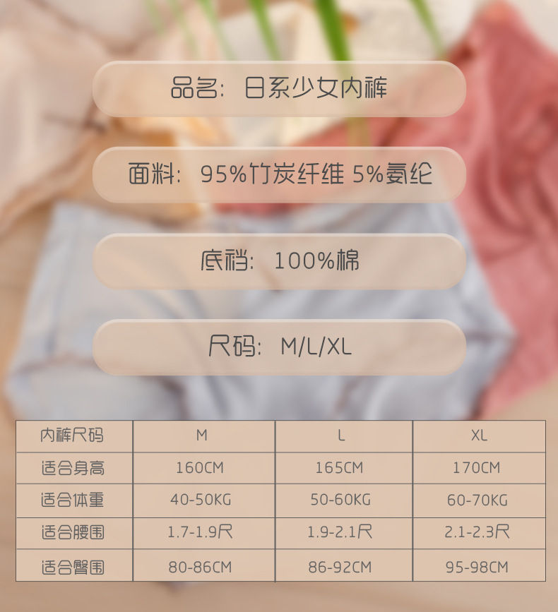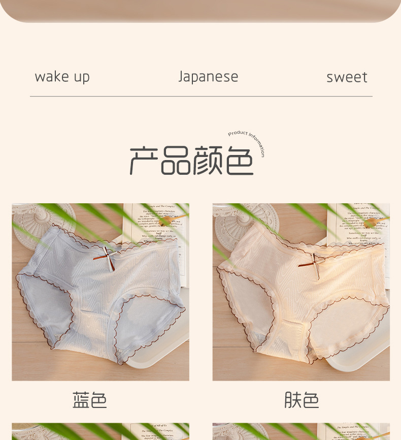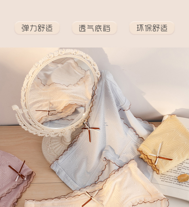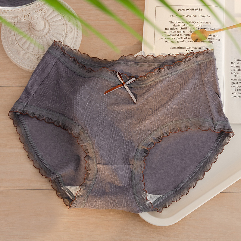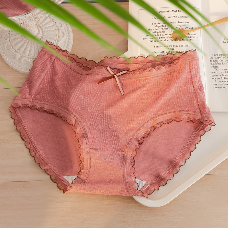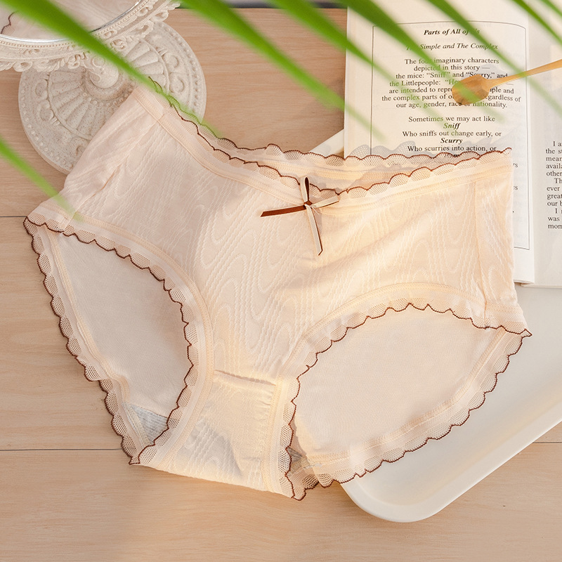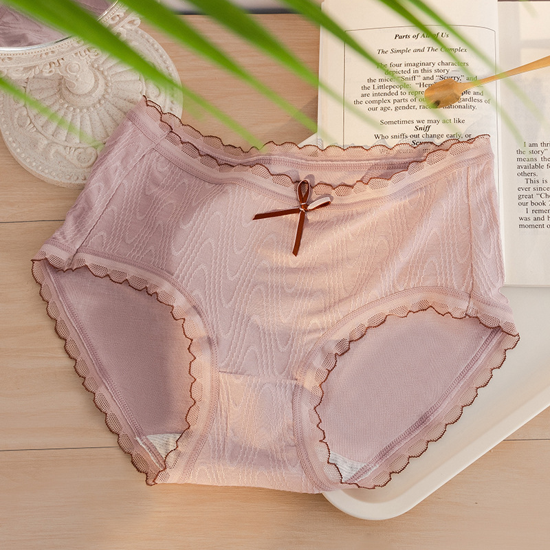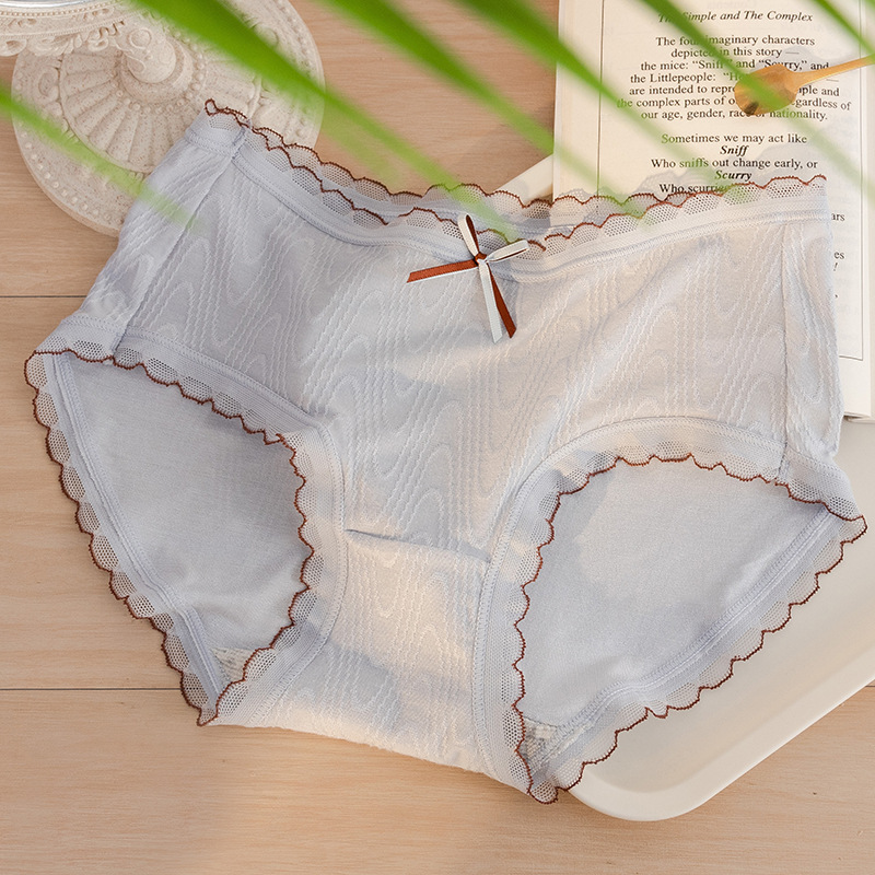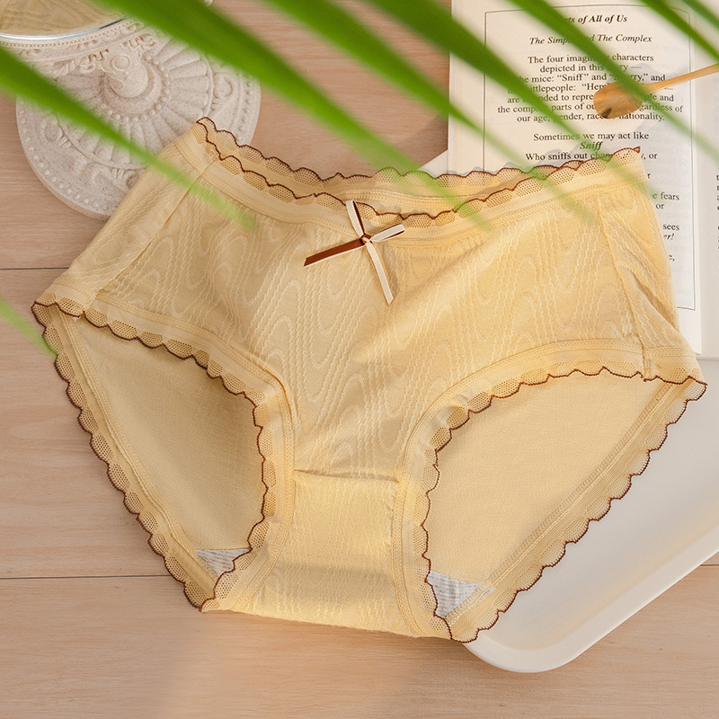 일본 소녀의 흔적이없는 알몸 고탄력 미드 웨이스트 랩 힙 스위트 자카드 보우 면 항균 가랑이 여름 속옷