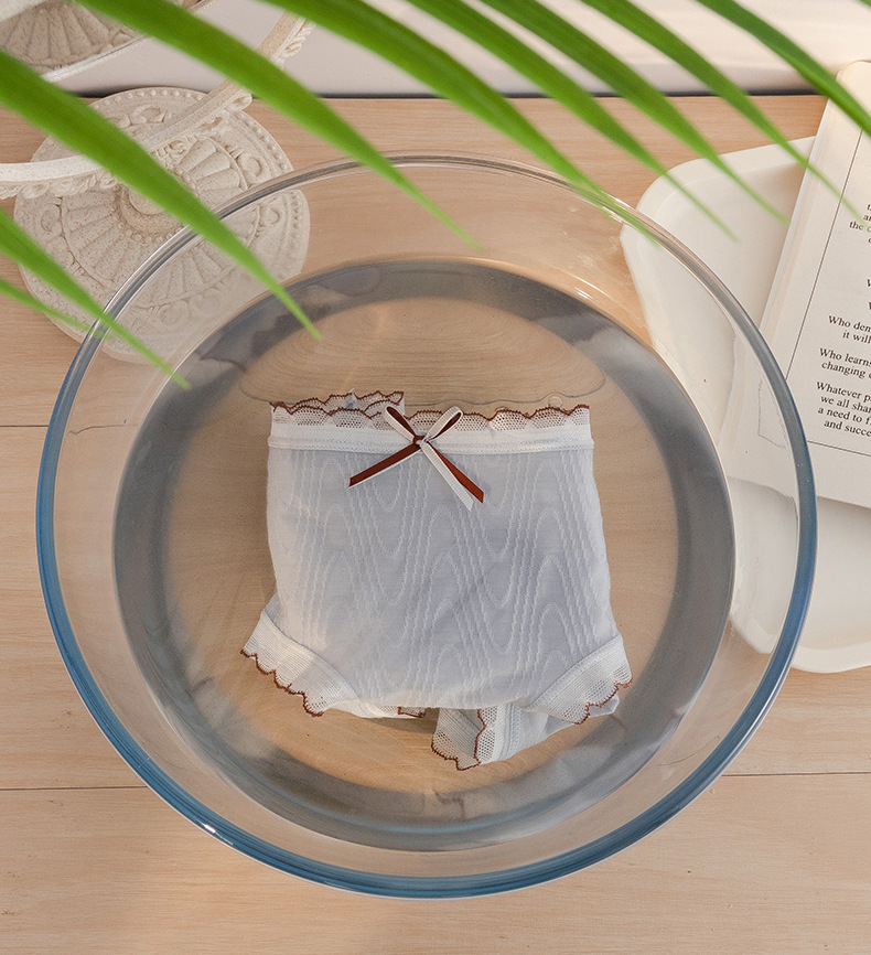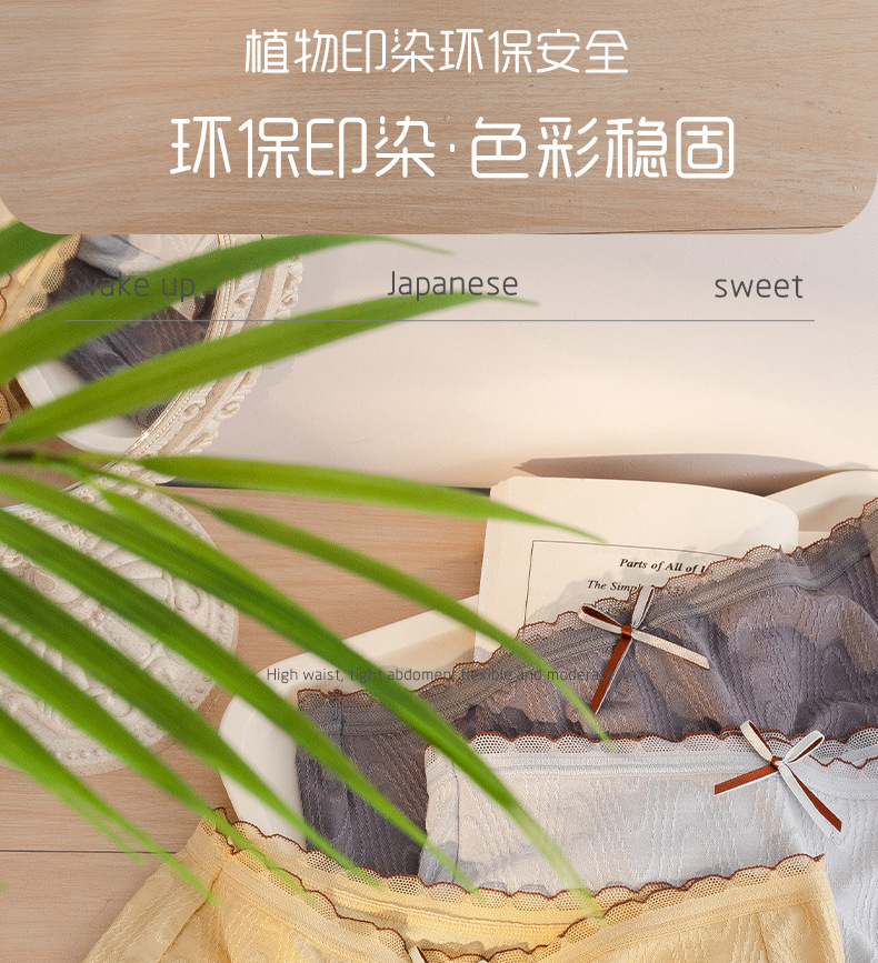 일본 소녀의 흔적이없는 알몸 고탄력 미드 웨이스트 랩 힙 스위트 자카드 보우 면 항균 가랑이 여름 속옷스토어 가기