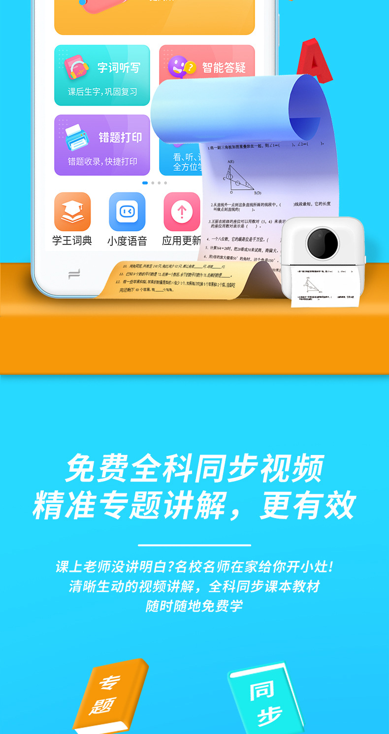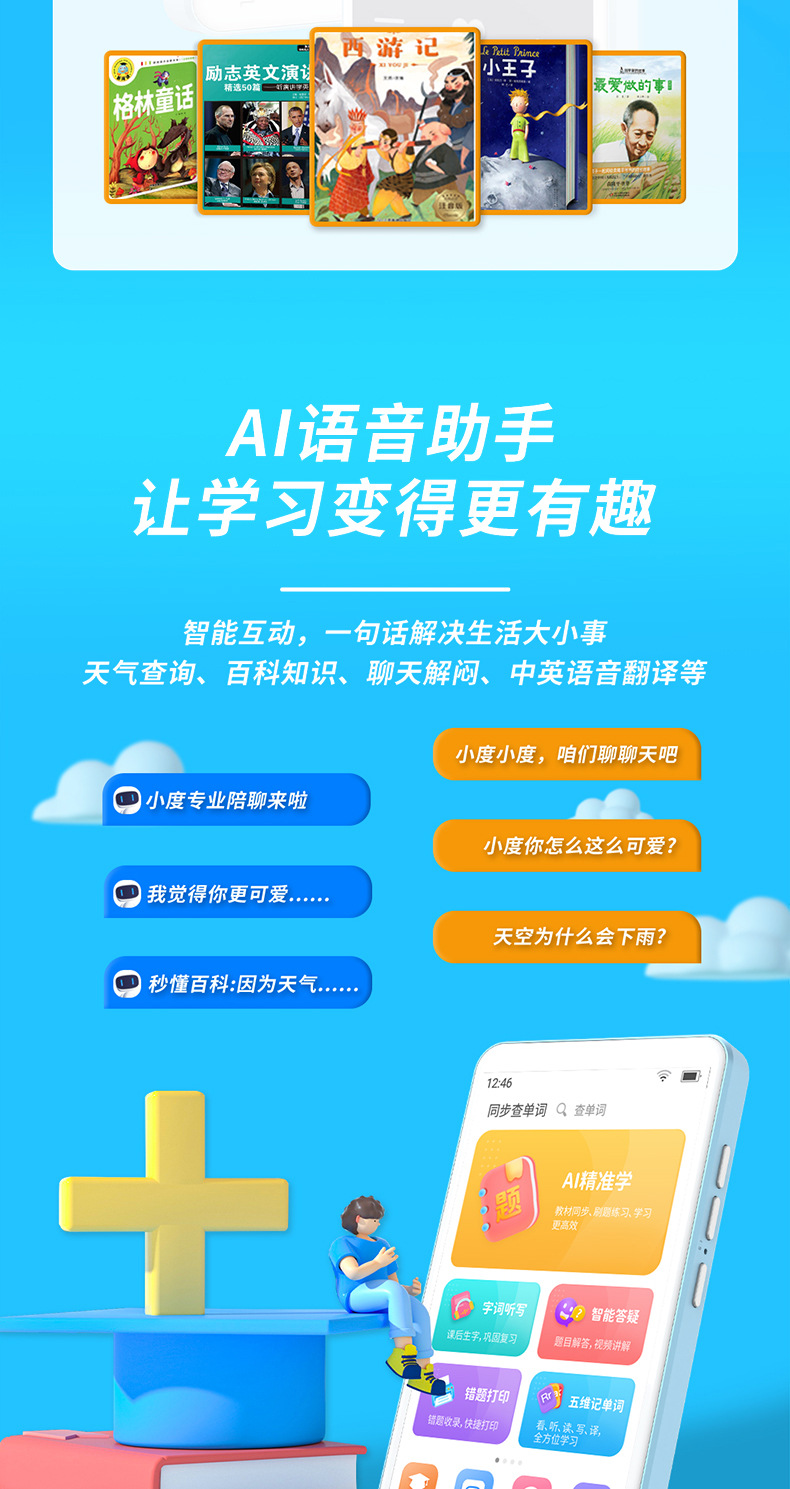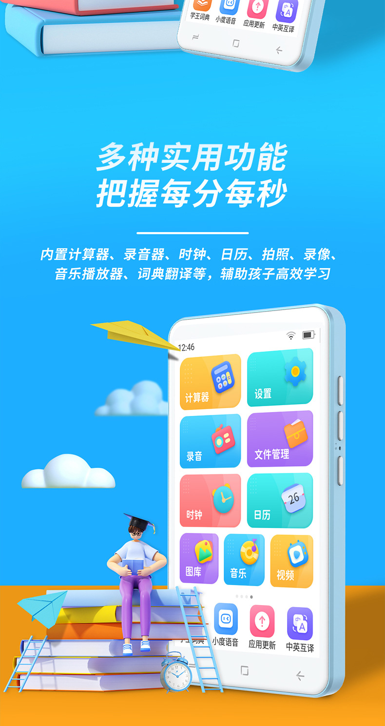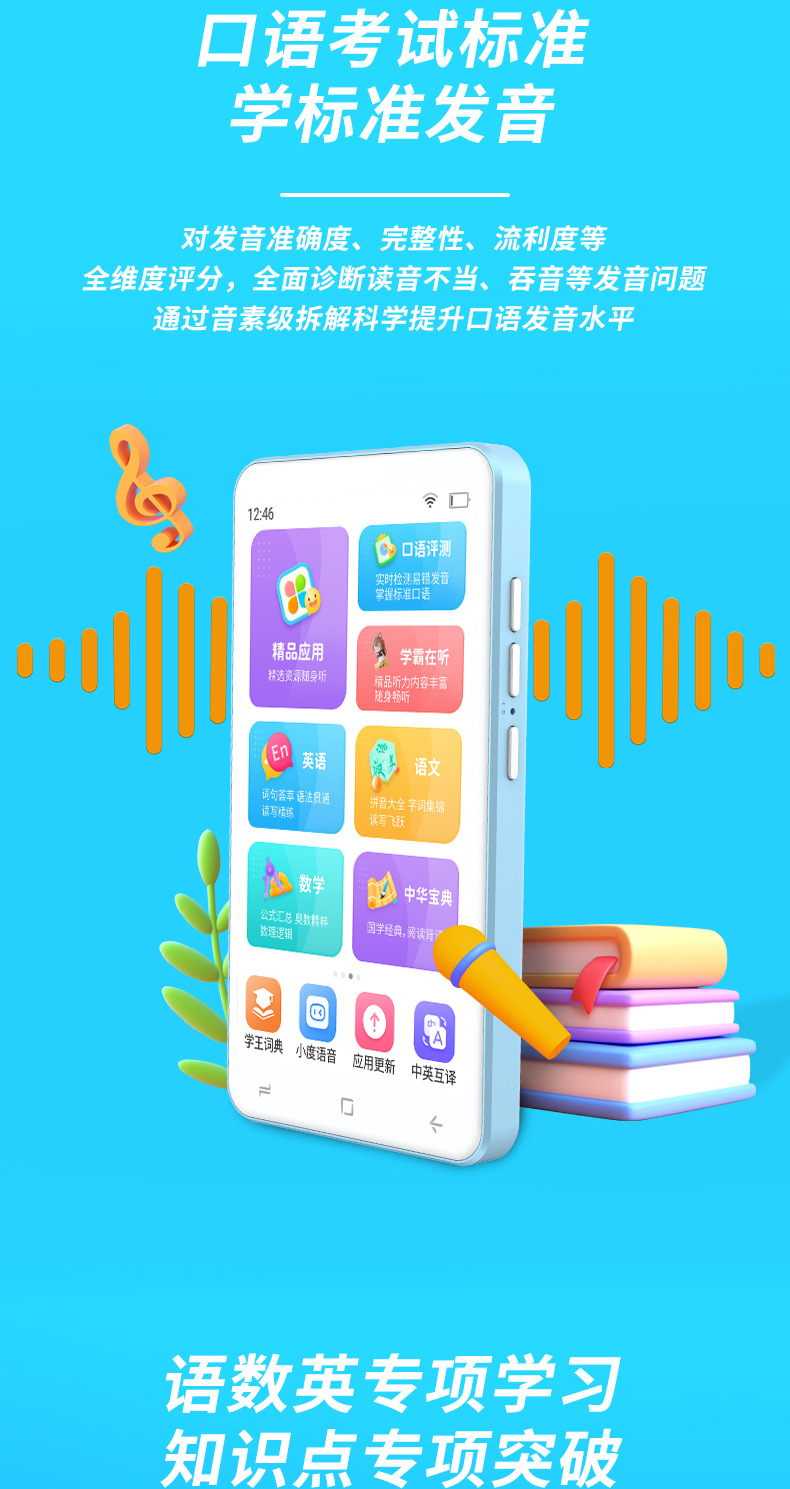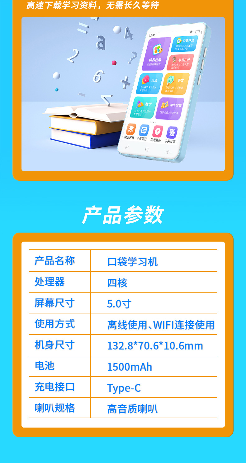 5.0inch 포켓 학습 기계 청취 리피터 초등 및 중등 고등학교 일반 과목 튜토리얼 비디오 사진 검색 질문 학습 유물스토어 가기