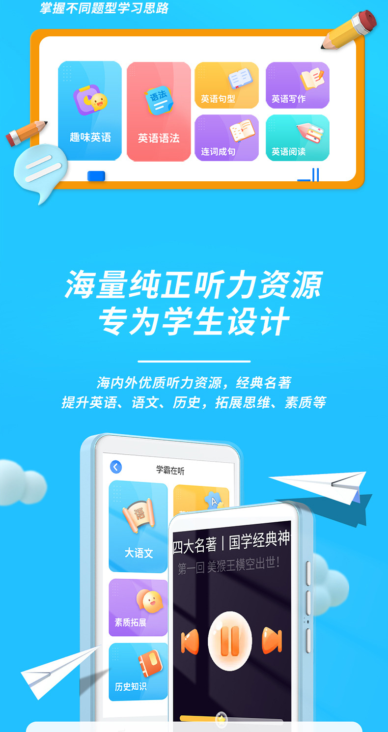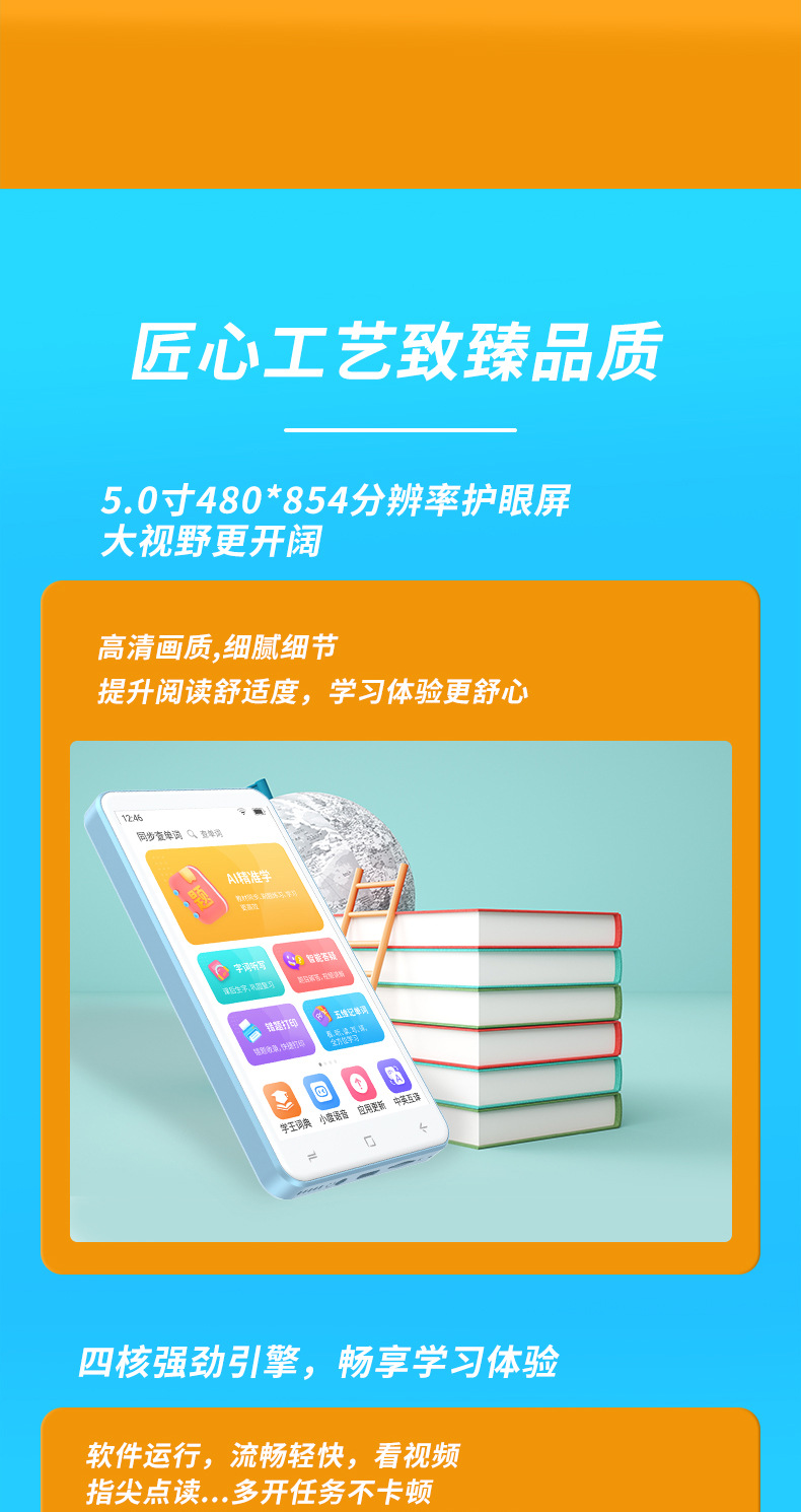 5.0inch 포켓 학습 기계 청취 리피터 초등 및 중등 고등학교 일반 과목 튜토리얼 비디오 사진 검색 질문 학습 유물