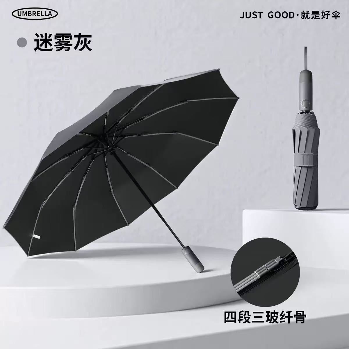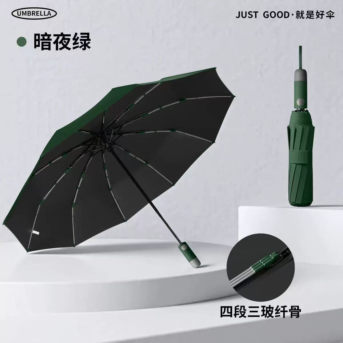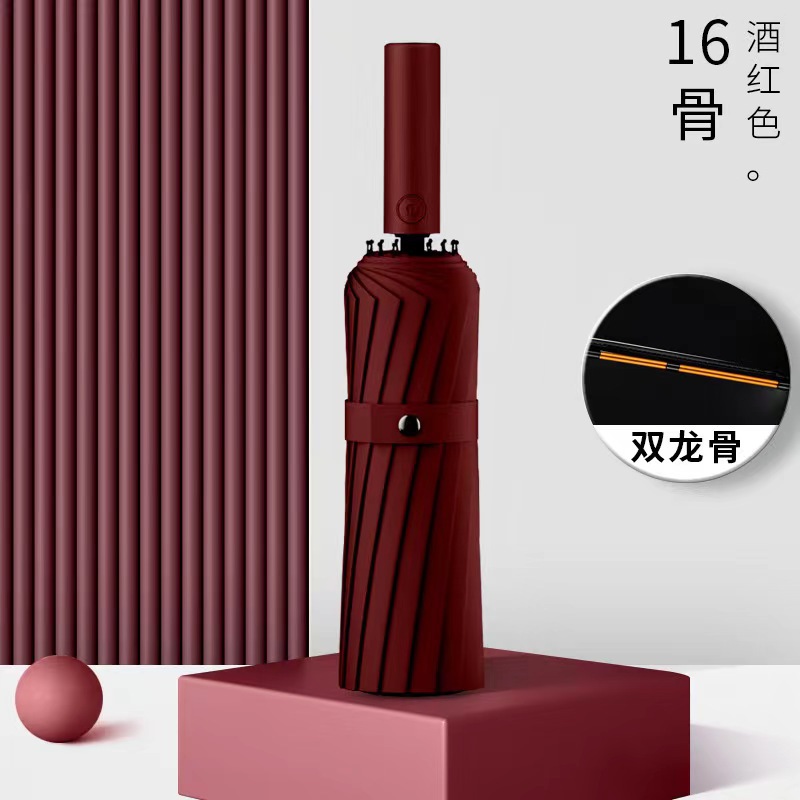 32 본 전자동 우산 더블 드래곤 본 블랙 고무 우산 맑고 비 이중 사용 방풍 두꺼운 단색 비즈니스 양산 3 중 우산스토어 가기