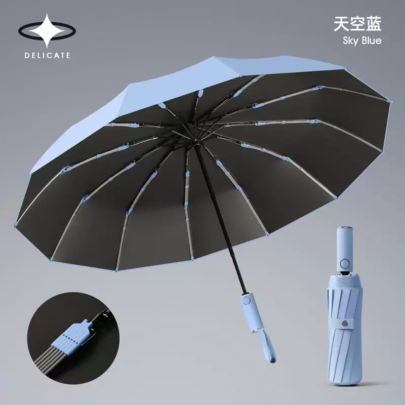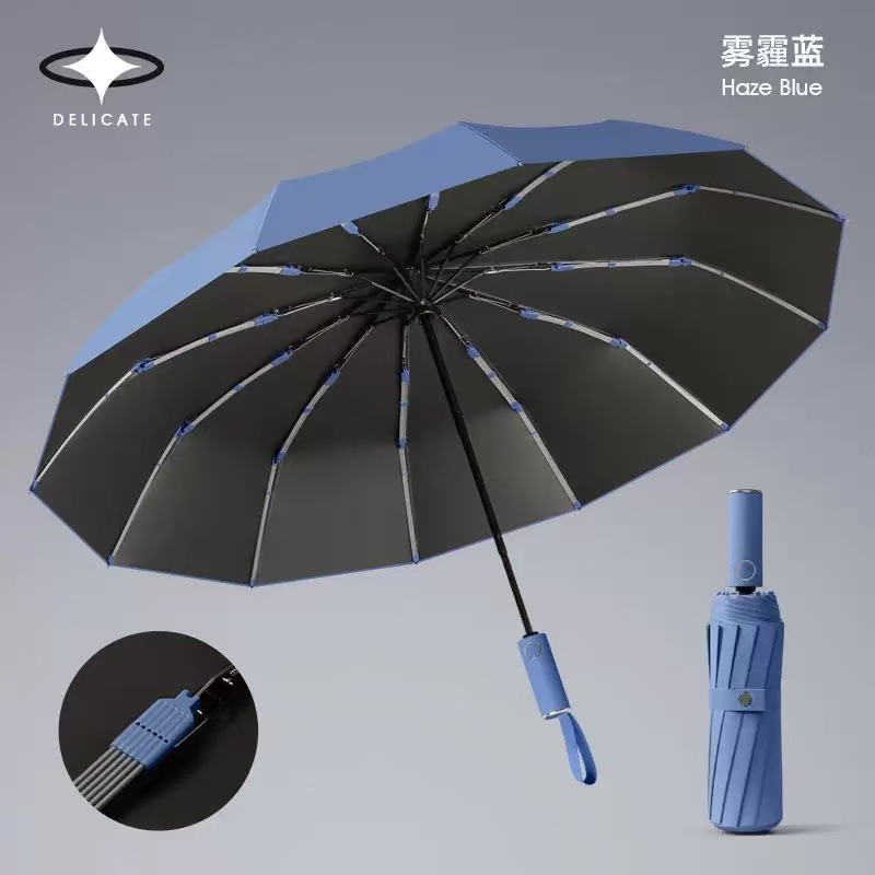 32 본 전자동 우산 더블 드래곤 본 블랙 고무 우산 맑고 비 이중 사용 방풍 두꺼운 단색 비즈니스 양산 3 중 우산