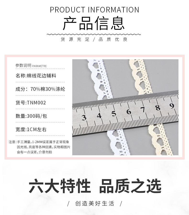 도매 면 레이스 직물 1cm 멀티 컬러 레이스 중공 diy 레이스 장식 의류 액세서리 TNM002